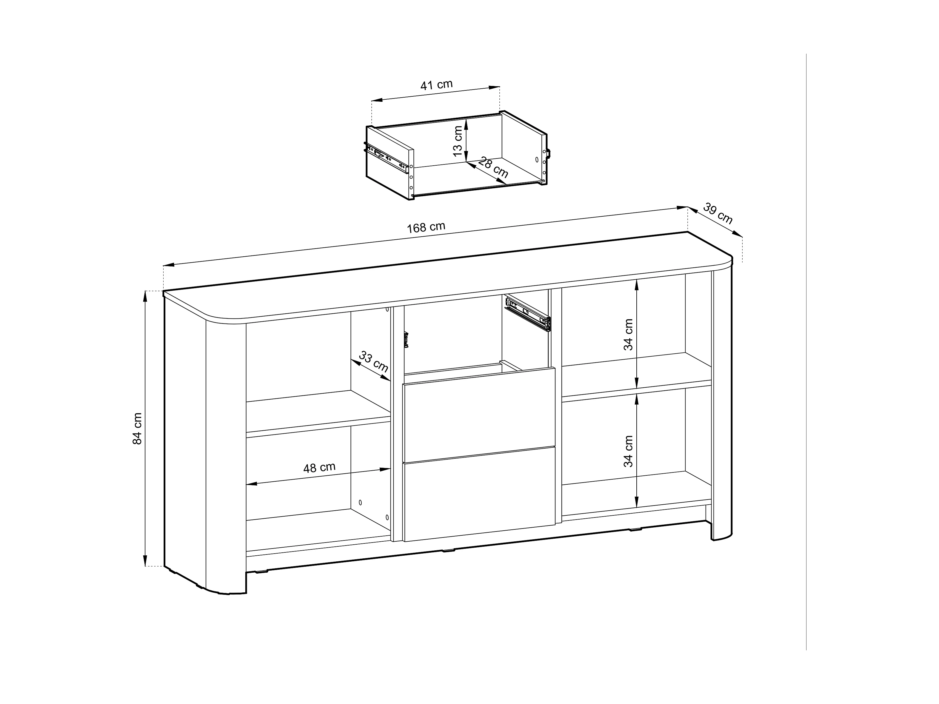 Buffet, Cachemire, 168 x 39 x 84 cm, Meuble moderne aux bords arrondis
