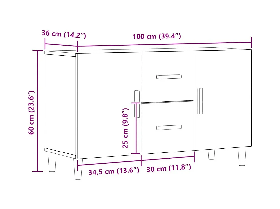 Buffet chêne sonoma 100x36x60 cm bois d'ingénierie