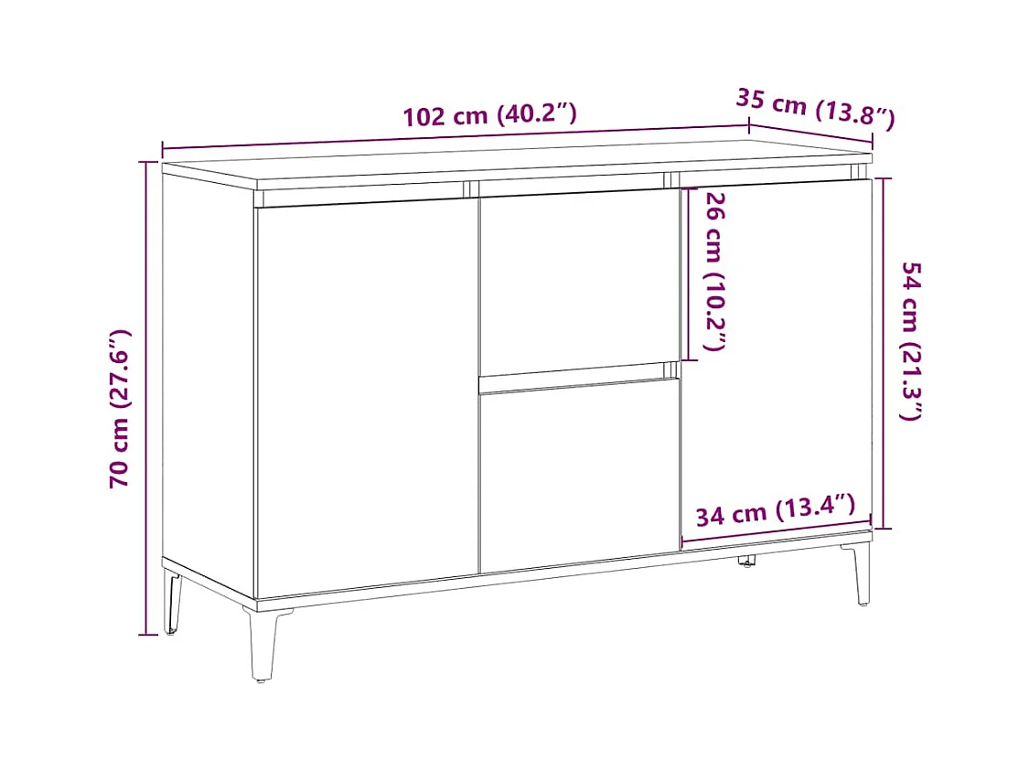 Buffet chêne sonoma 102x35x55 cm bois d'ingénierie
