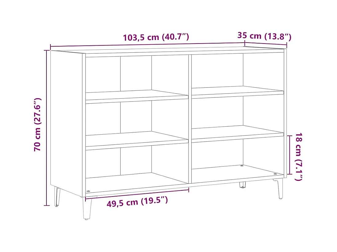 Buffet chêne sonoma 103,5x35x70 cm bois d'ingénierie