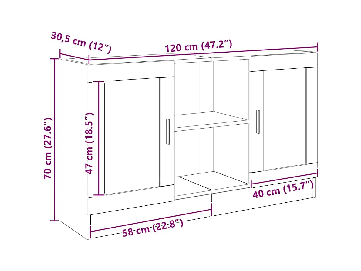 Buffet Chêne fumé 120x30,5x70 cm Bois d'ingénierie