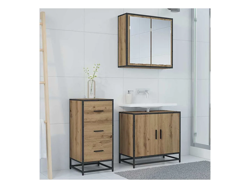 Buffet chêne sonoma 35,5x35x76 cm bois d'ingénierie et métal