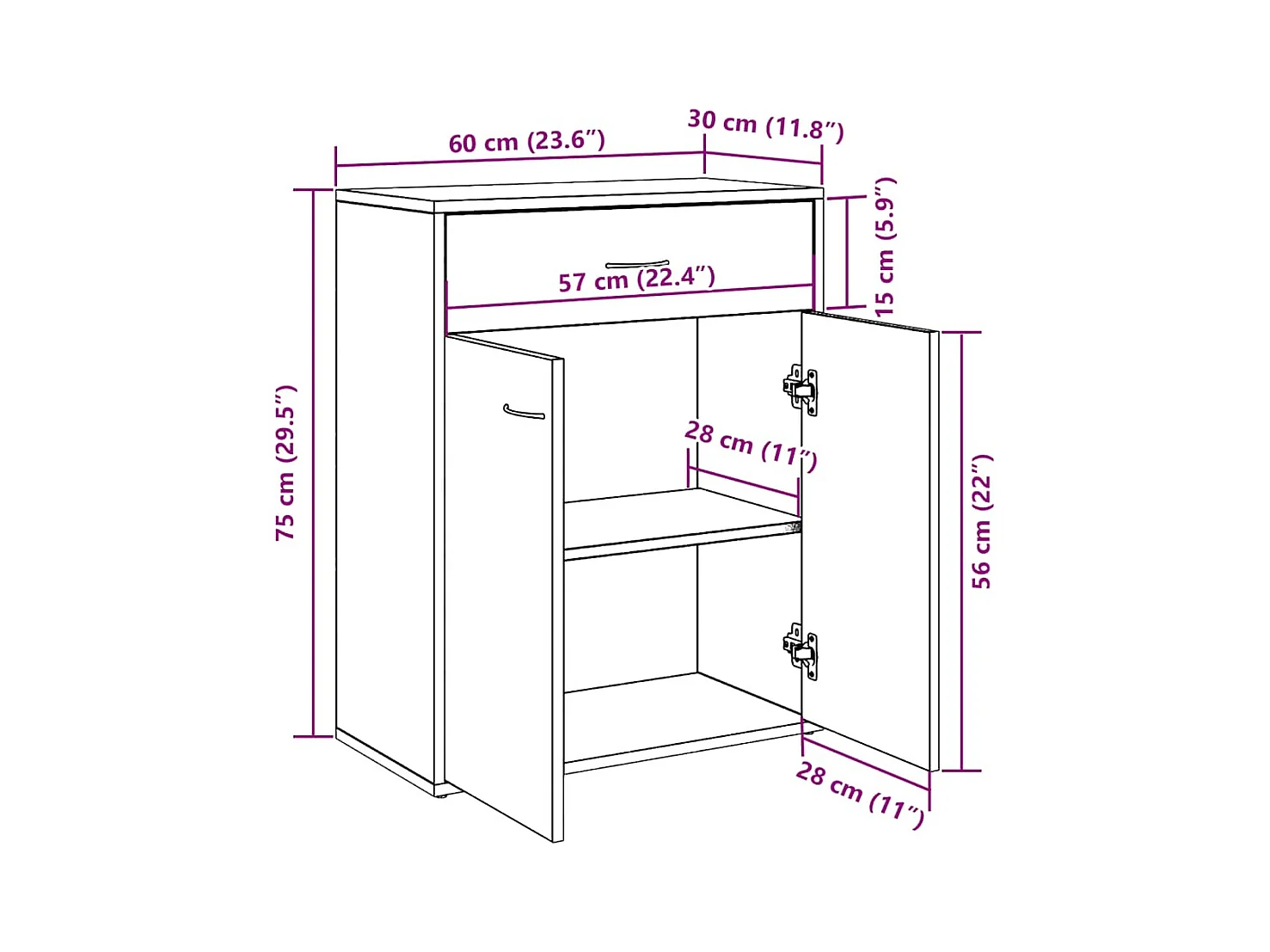 Buffet chêne sonoma 62x35x76 cm bois d'ingénierie