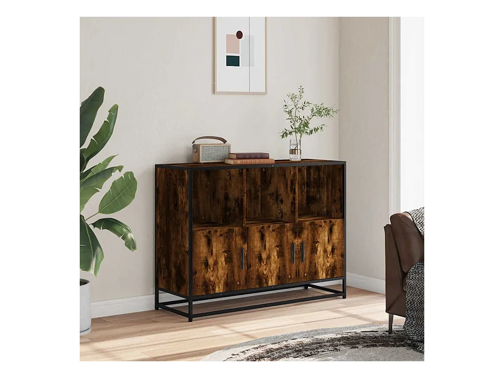 Buffet chêne fumé 100x35x76 cm bois d'ingénierie