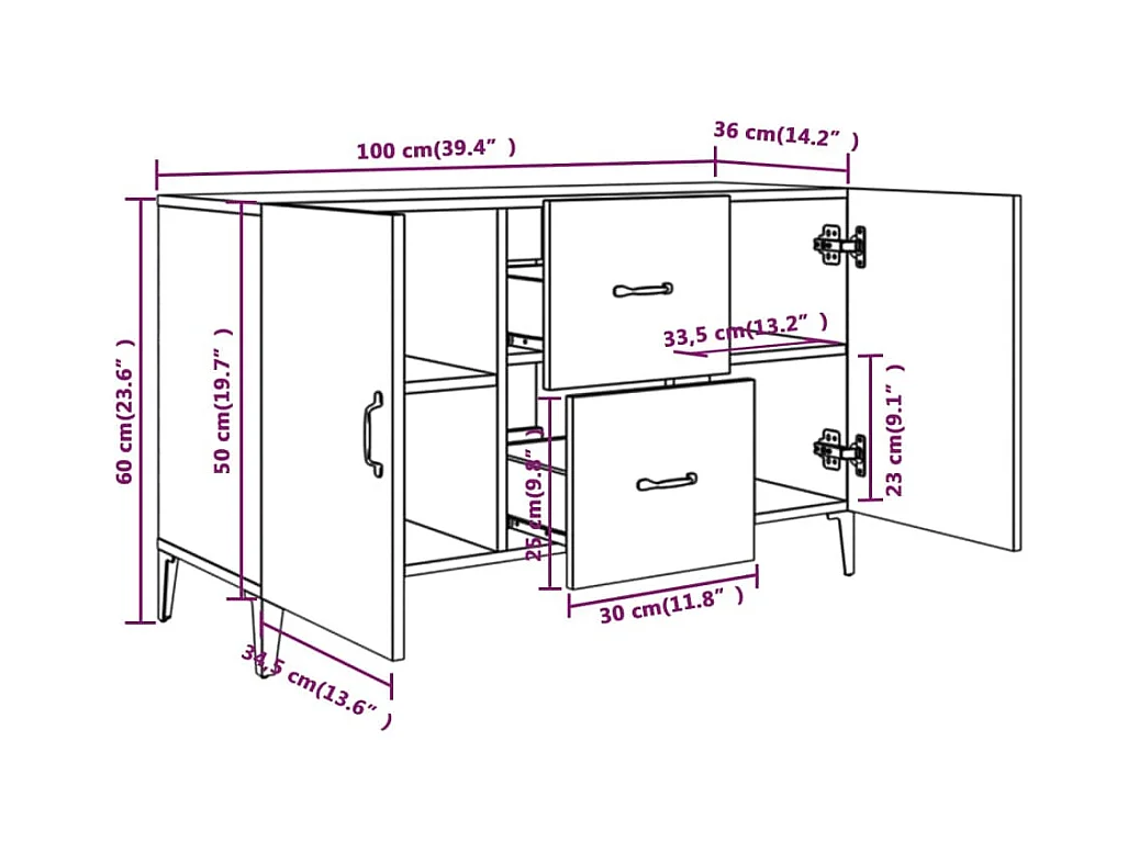 Buffet chêne sonoma 100x36x60 cm bois d'ingénierie