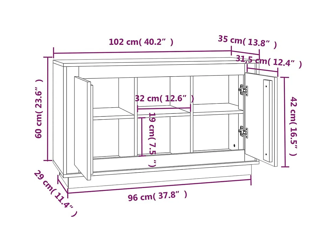 Buffet vieux bois 102x35x60 cm bois d'ingénierie