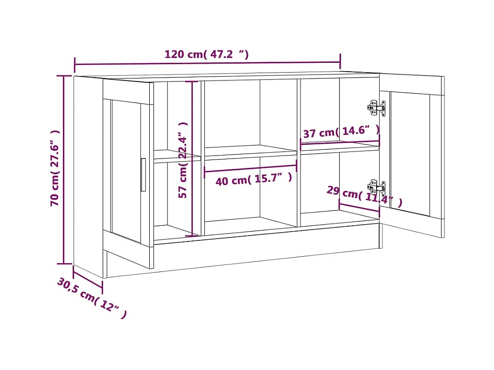 Buffet Chêne fumé 120x30,5x70 cm Bois d'ingénierie