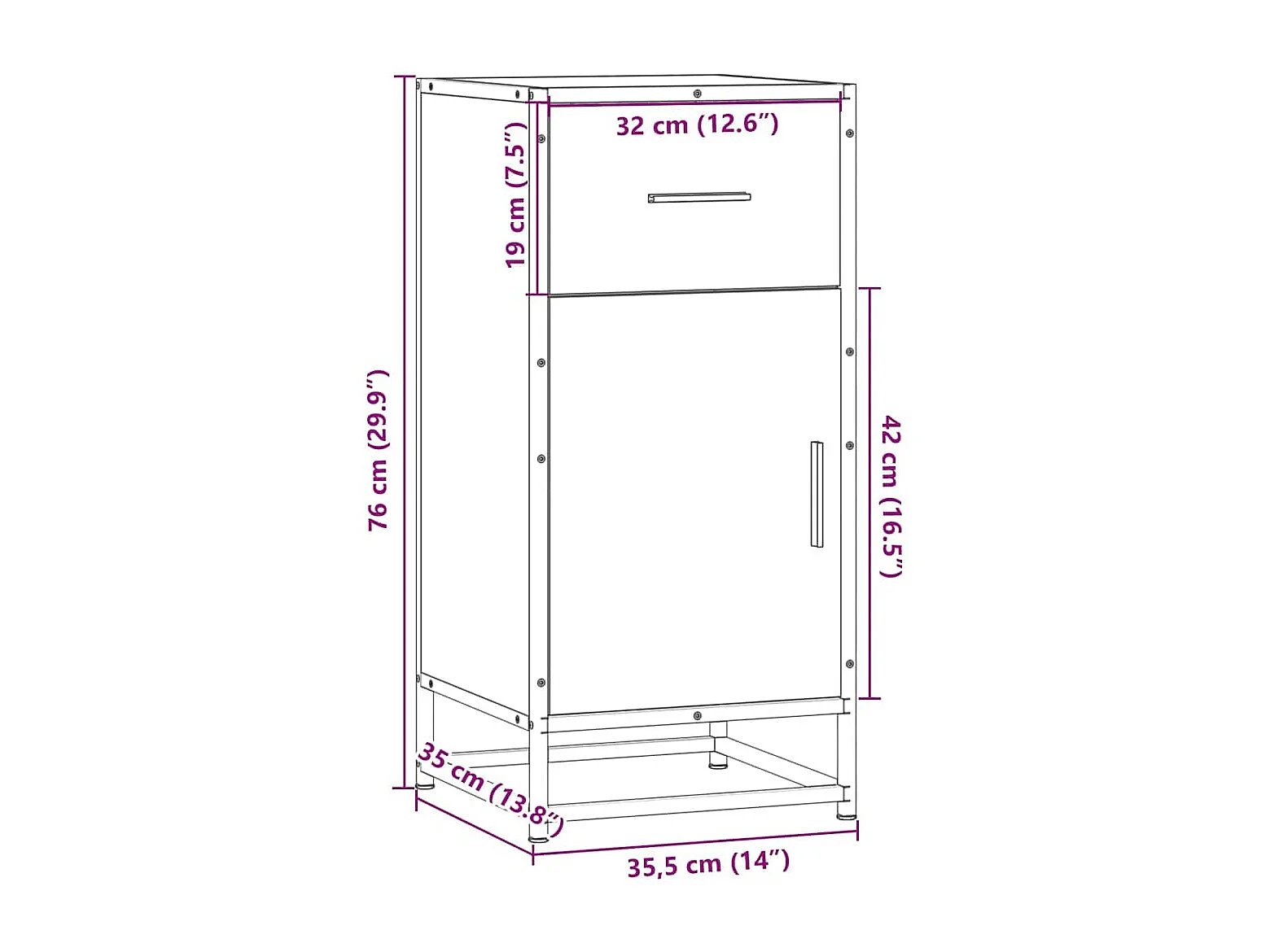 Buffet chêne fumé 35,5x35x76 cm bois d'ingénierie et métal