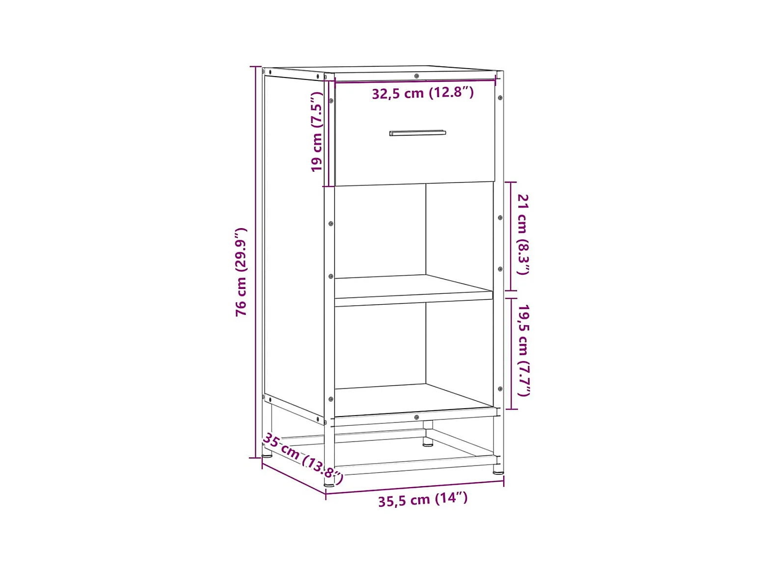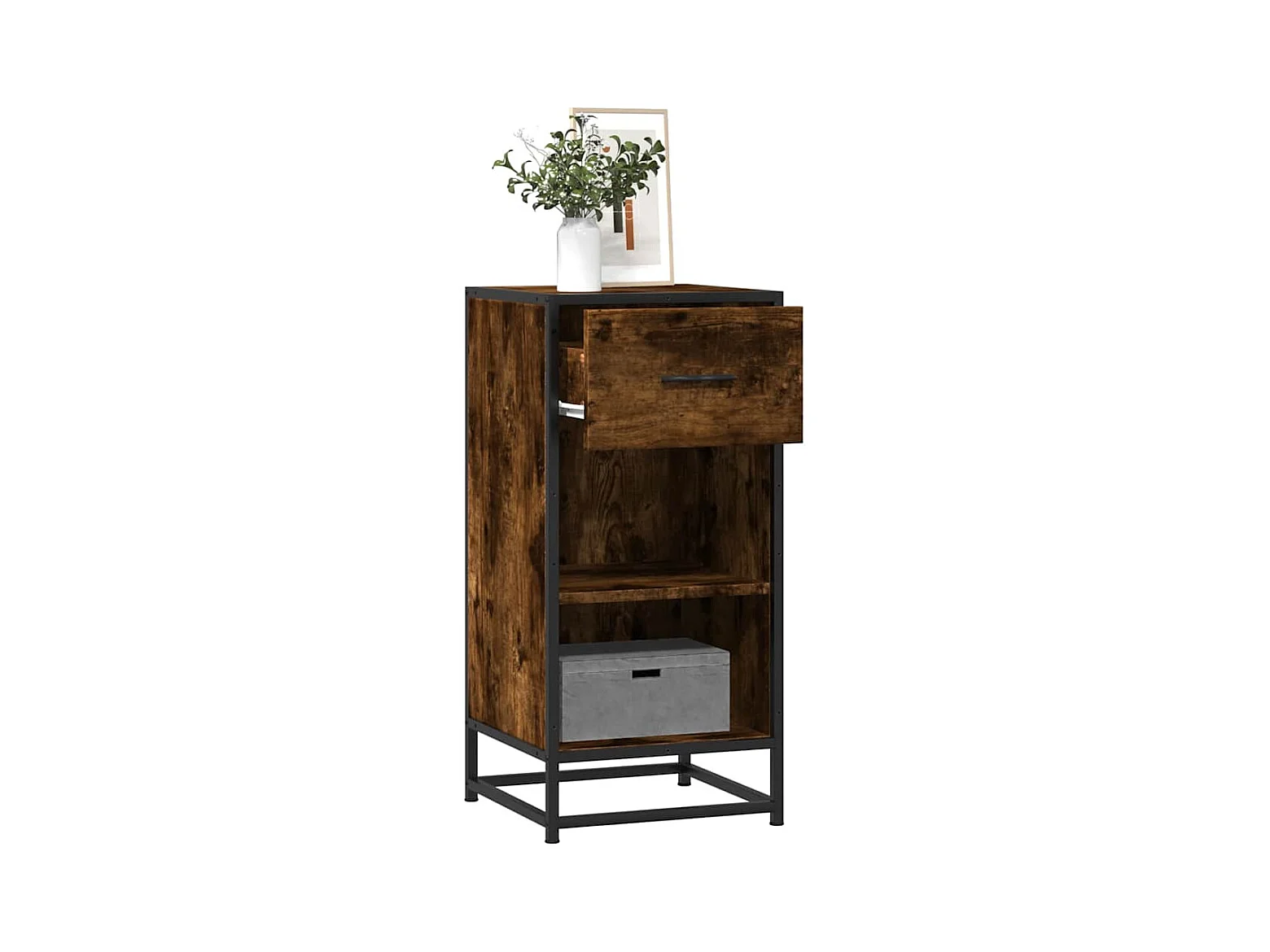 Buffet chêne fumé 35,5x35x76 cm bois d'ingénierie et métal