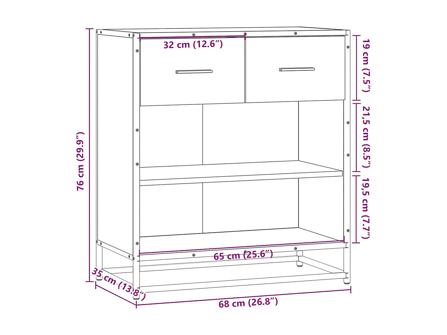Buffet chêne sonoma 68x35x76 cm bois d'ingénierie