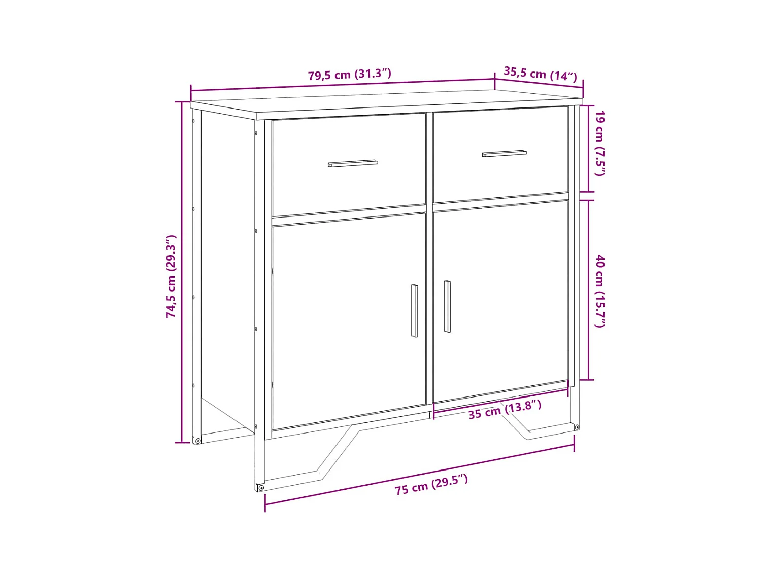 Buffet chêne sonoma 79,5x35,5x74,5 cm bois d'ingénierie
