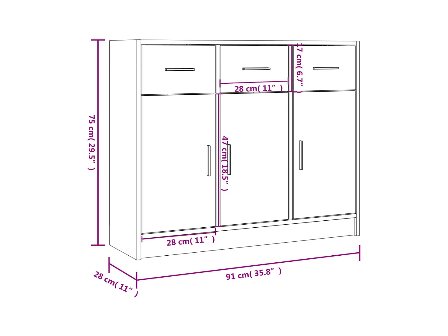 Buffet chêne sonoma 91x28x75 cm bois d'ingénierie