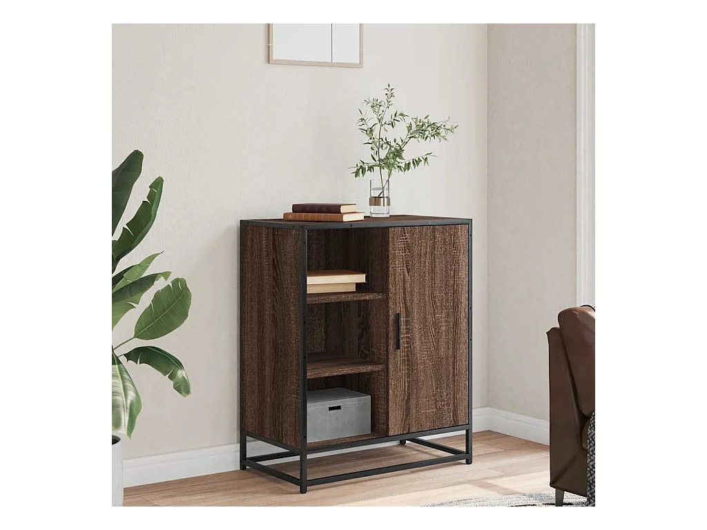 Buffet chêne marron 35,5x35x76 cm bois d'ingénierie et métal