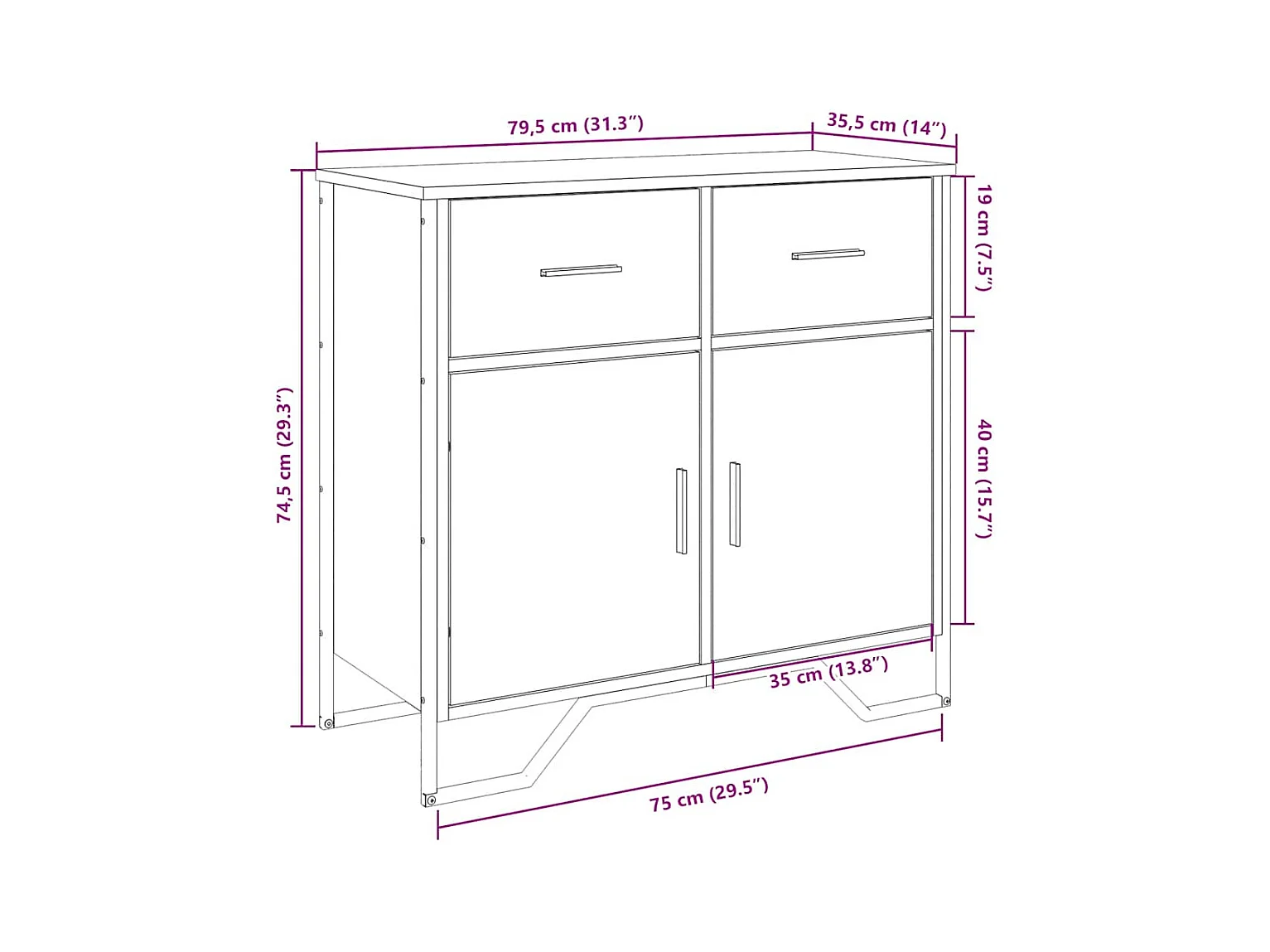 Buffet chêne sonoma 79,5x35,5x74,5 cm bois d'ingénierie