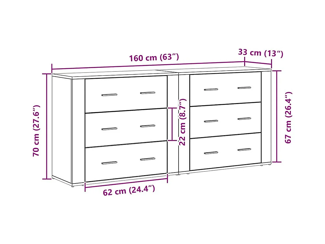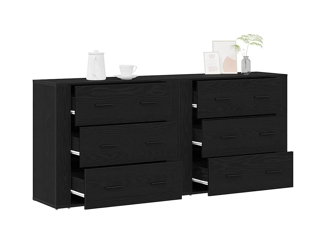 Buffets 2 pcs Chêne Noir Bois d'ingénierie