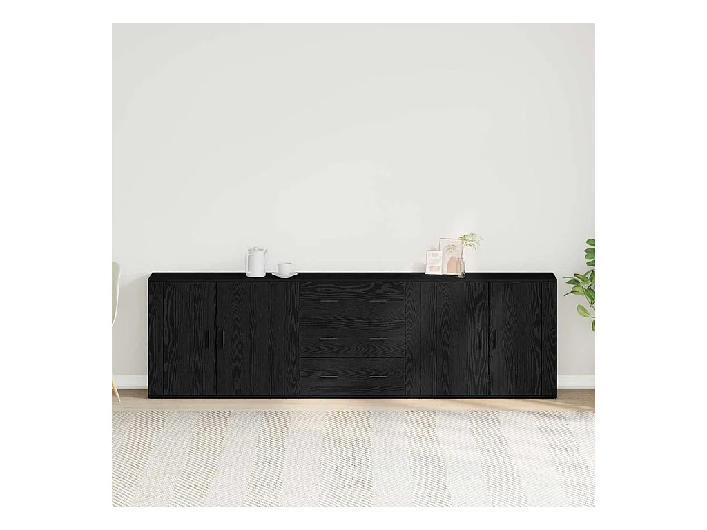 Buffets 3 pcs Chêne noir Bois d'ingénierie