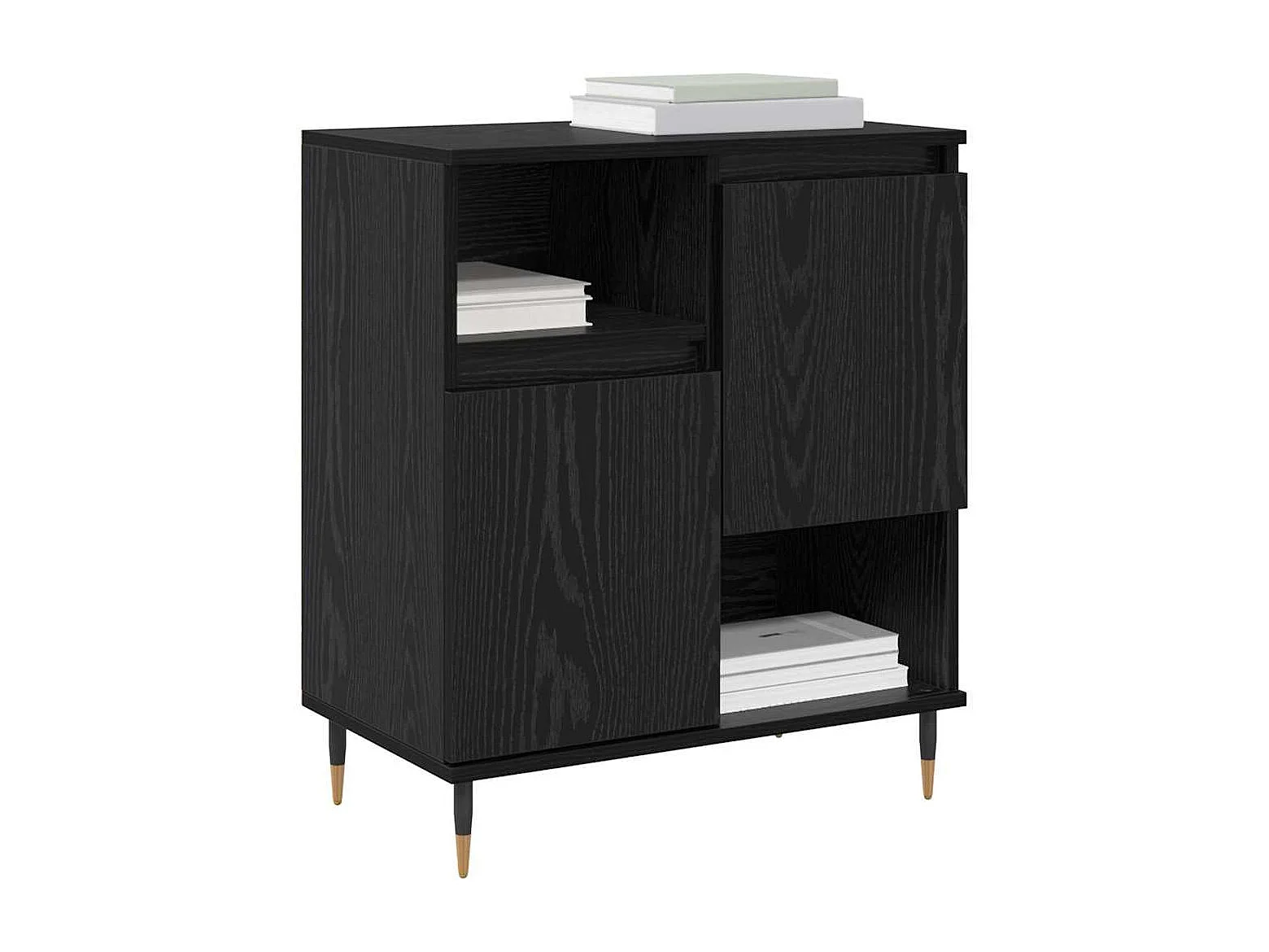 Buffet avec pieds en bois massif noir bois d'ingénierie