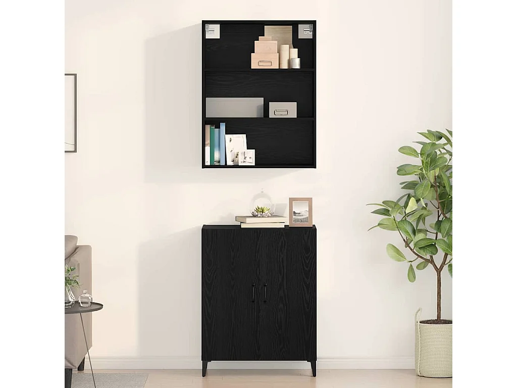 Buffet 2 pcs Noir Chêne 69,5x34x180 cm en bois d'ingénierie