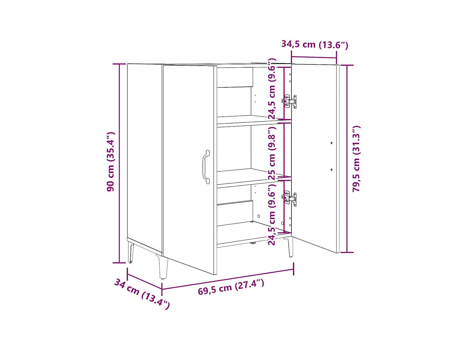 Buffet chêne noir 69,5x34x90 cm bois d'ingénierie