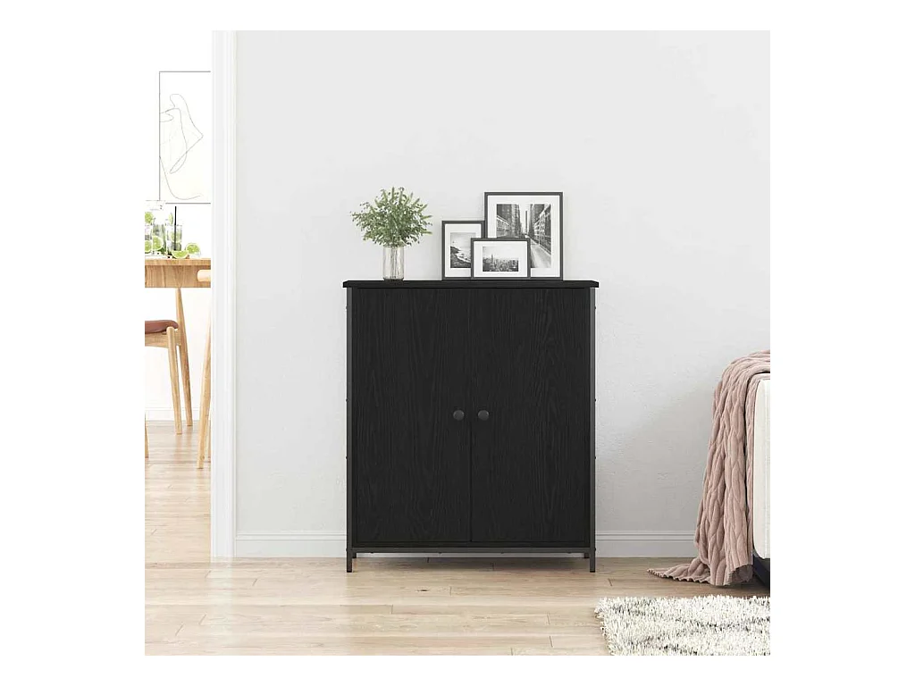 Buffet Noir Chêne 70x30x80 cm Bois reconstitué et Acier
