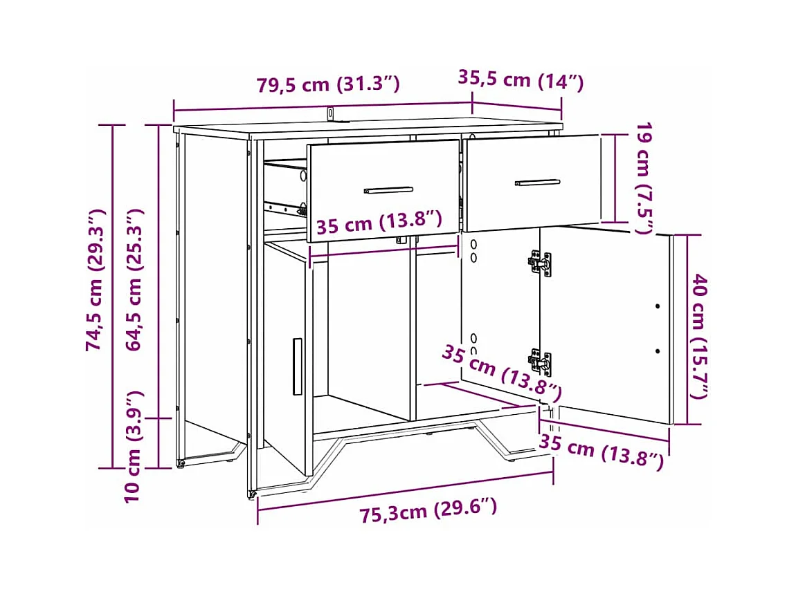 Buffet Chêne noir 78 x 35.5 x 74.5 cm Bois d'ingénierie