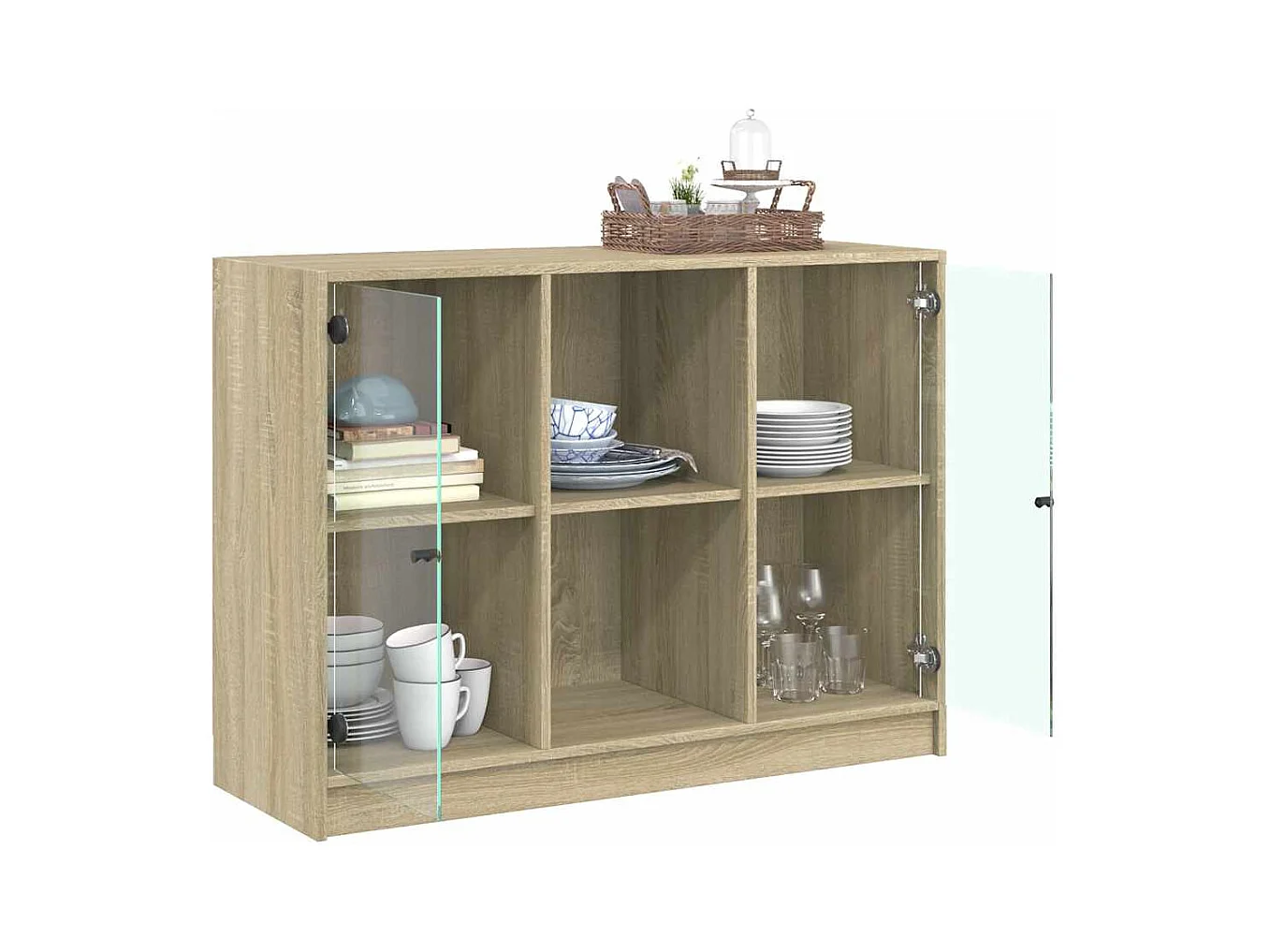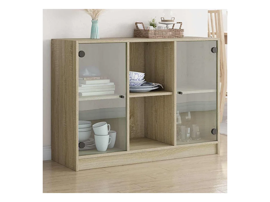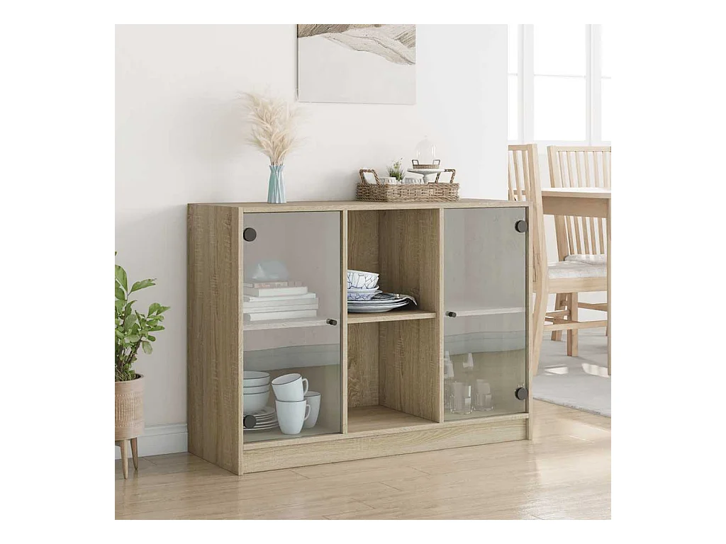 Armoire latérale avec portes en verre chêne sonoma 35x37x75,5cm