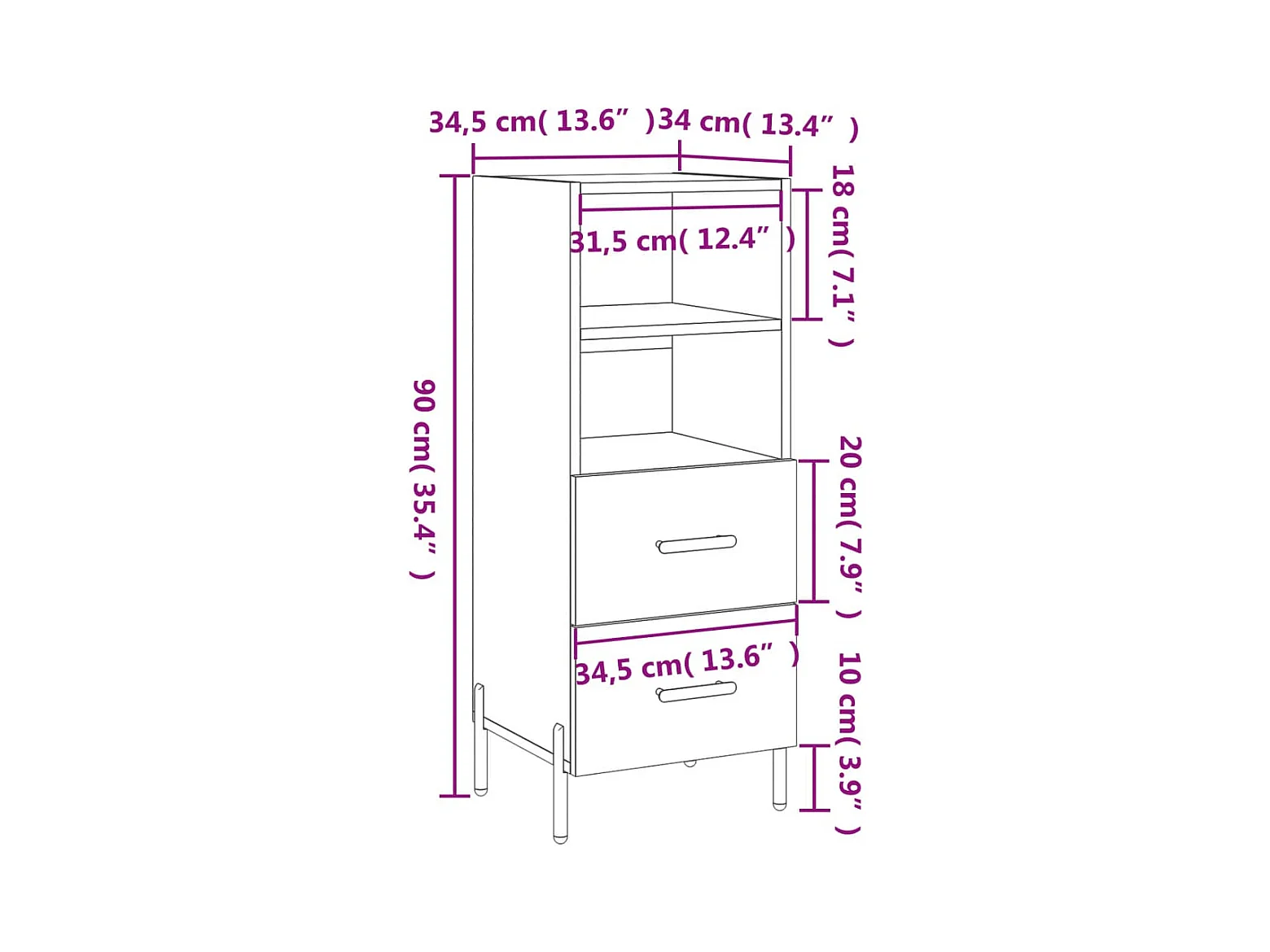 Buffet Chêne sonoma 34,5x34x90 cm Bois d'ingénierie