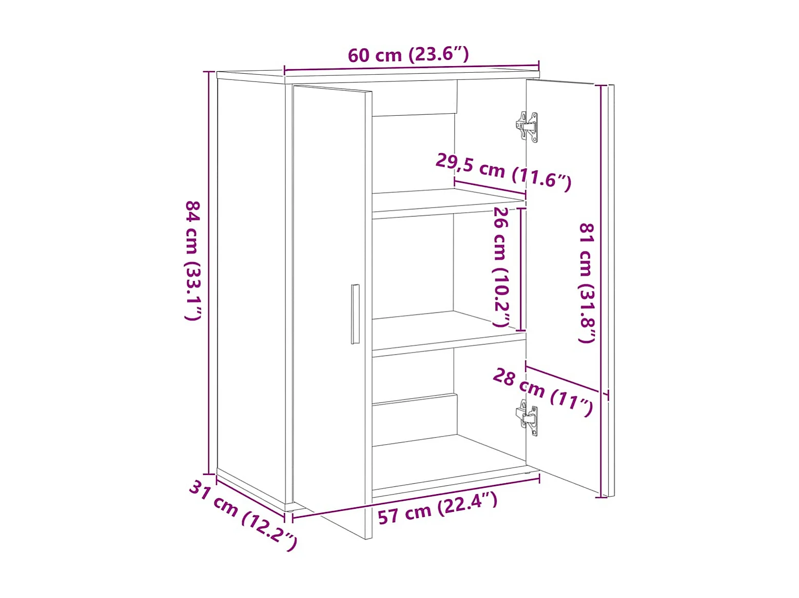 Buffet chêne sonoma 60x31x84 cm bois d'ingénierie
