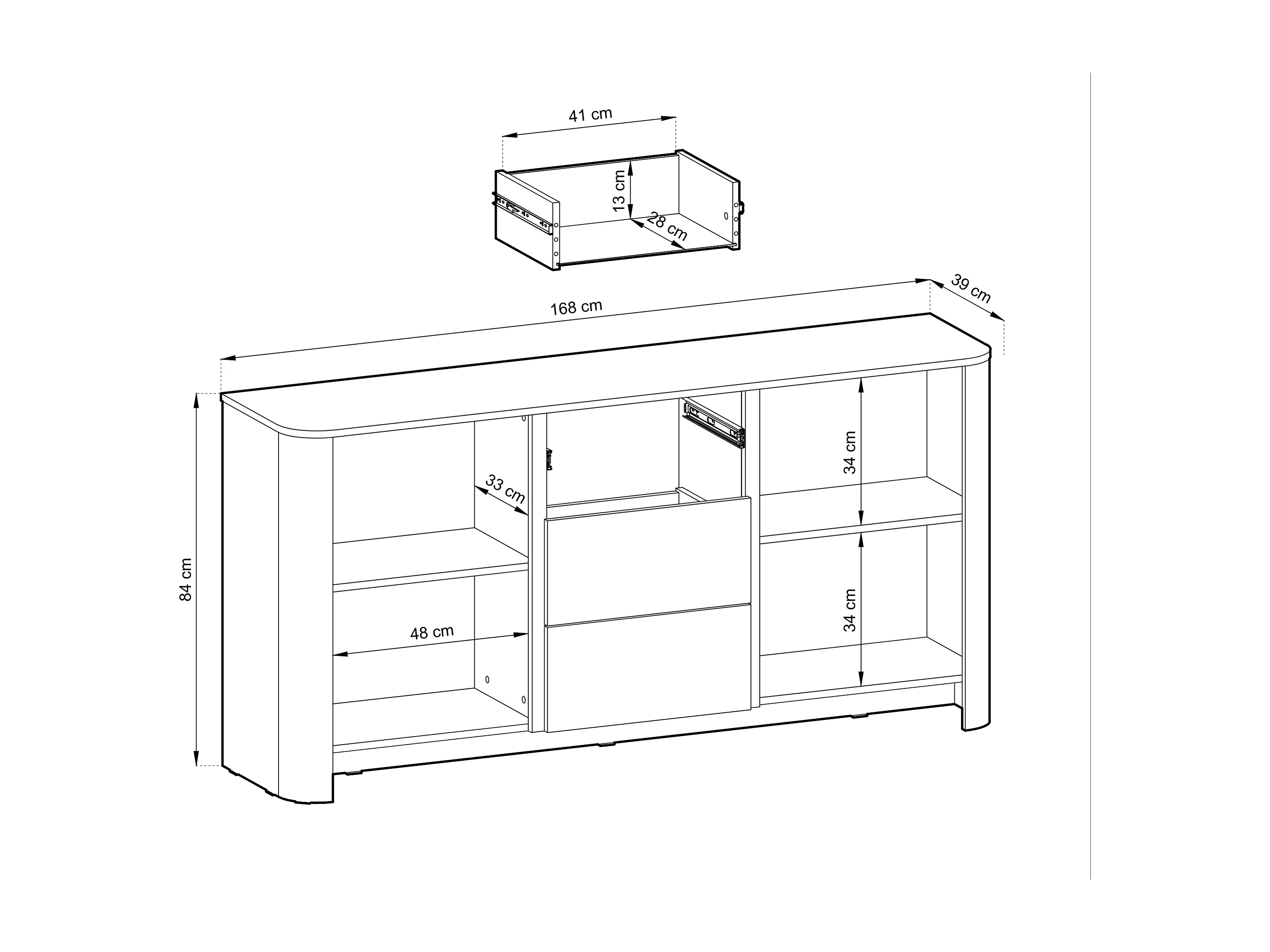 Buffet, Chêne Vicenza, 103 x 39 x 132 cm, Meuble moderne aux bords arrondis