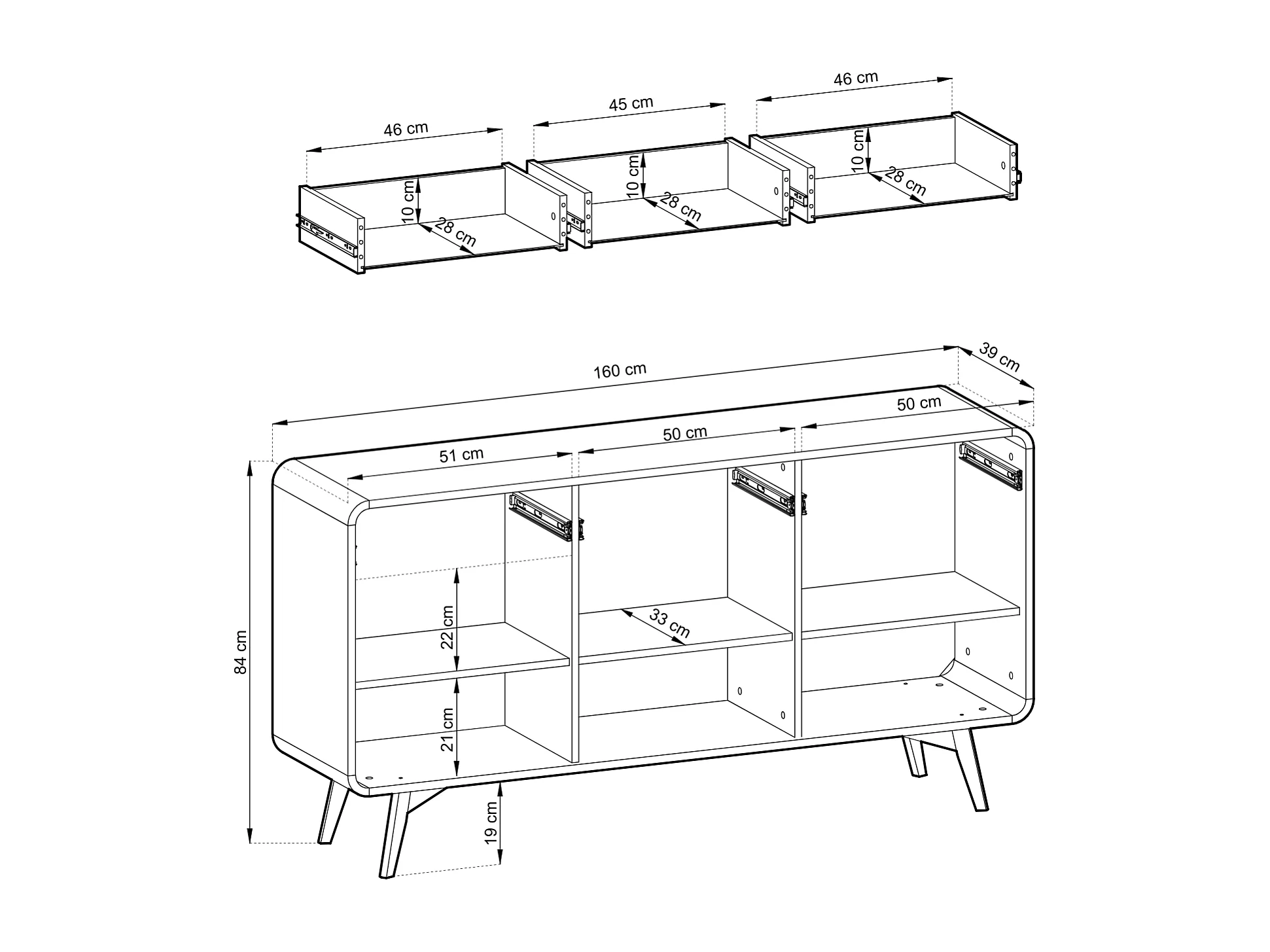 Buffet, Chêne Vincenza, 160 X 84 X 39 Cm