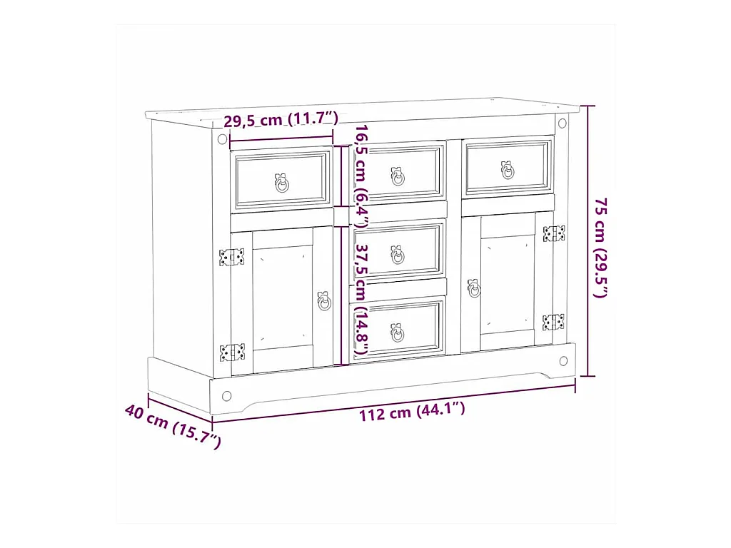 Buffet avec tiroirs VIGO 78x40x75 cm bois massif de pin