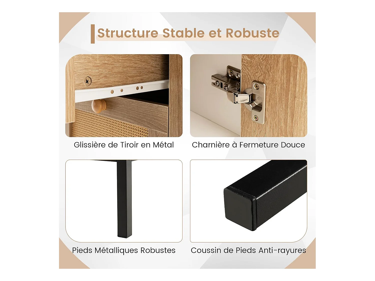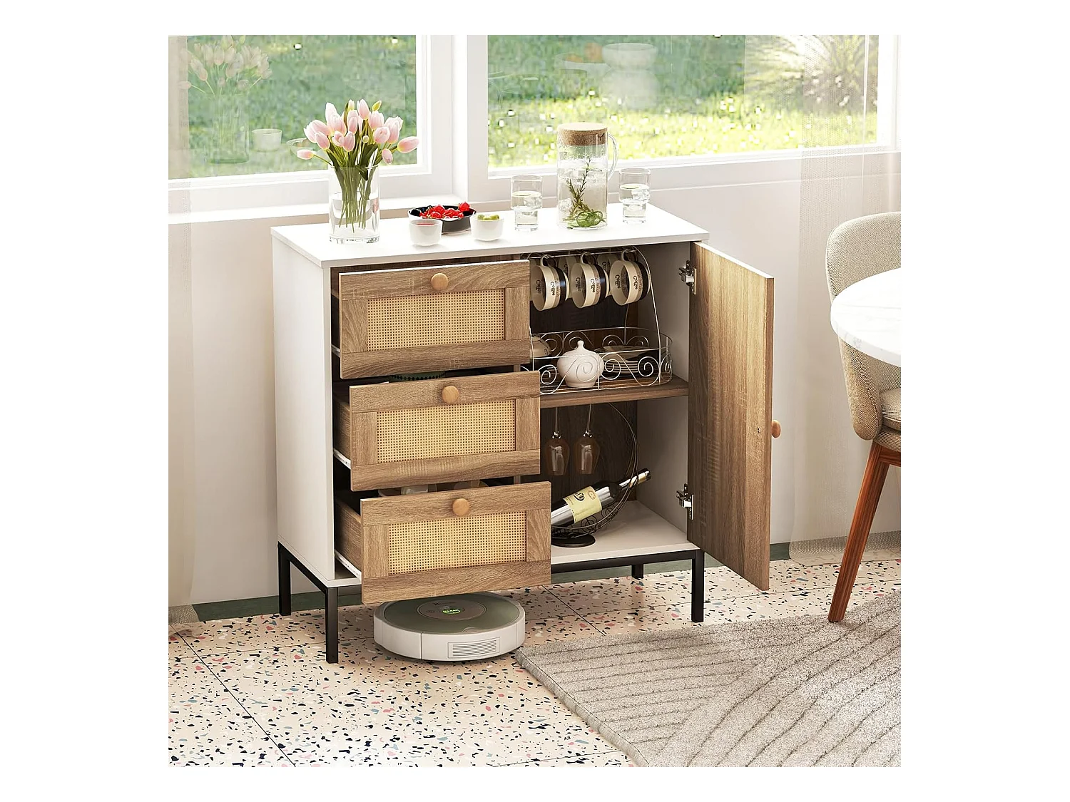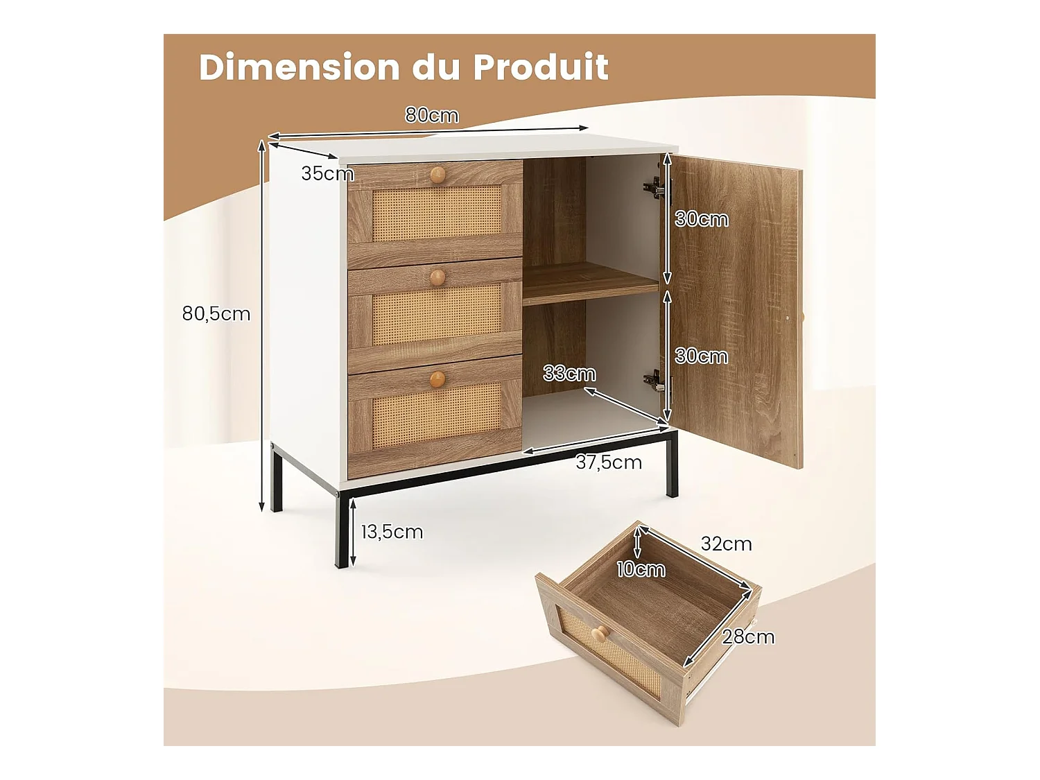 Buffet cuisine 3 tiroirs avec placard,étagère réglable, pied en métal, 80 x 35 x 80,5 cm