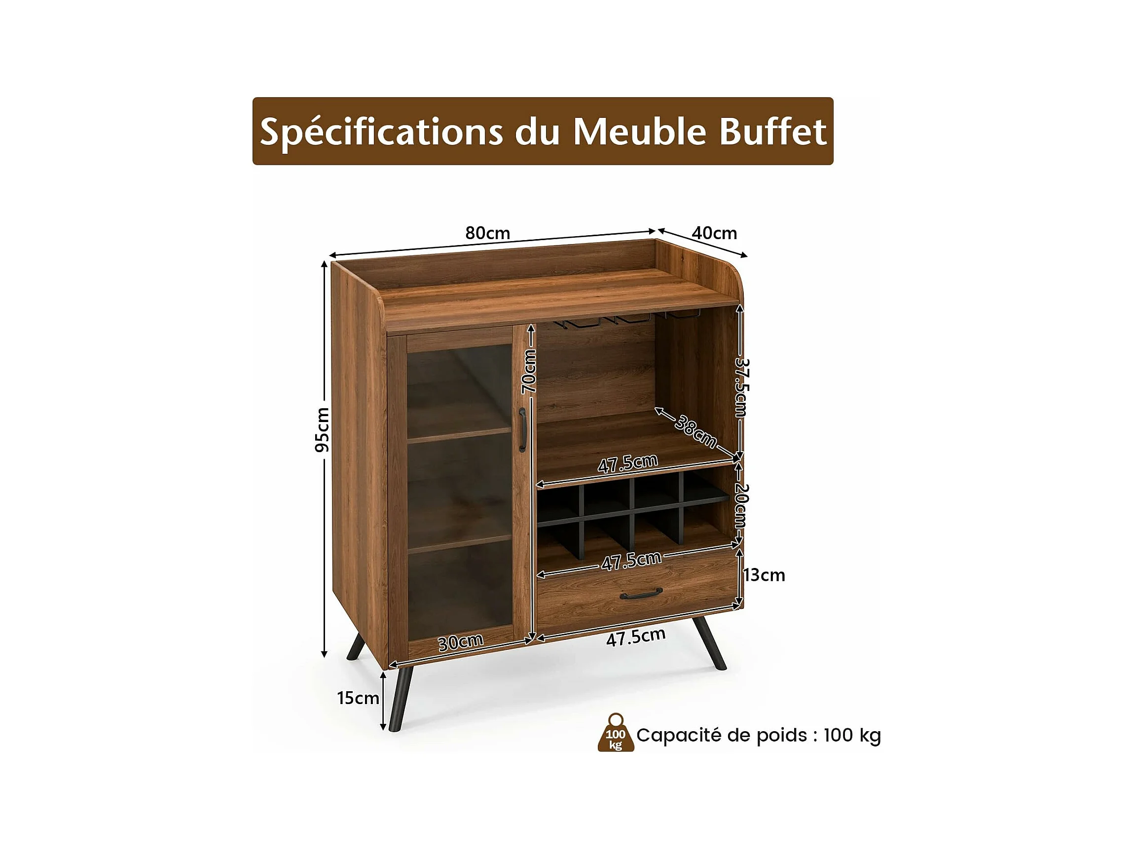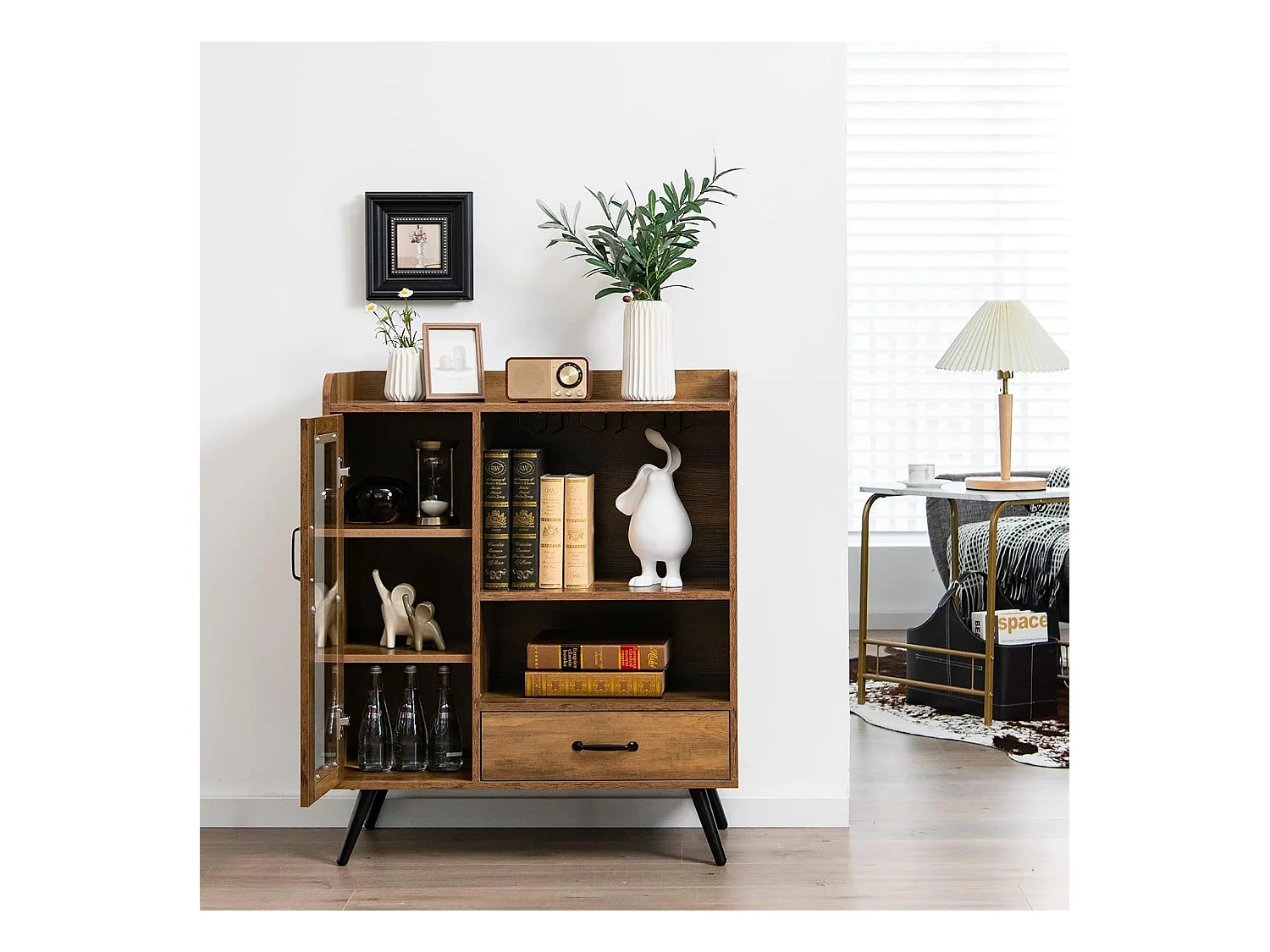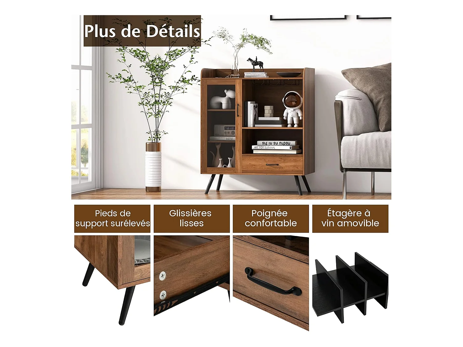 Buffet cuisine à porte vitrée avec tiroir 5 compartiments, 80x40x95cm, cuisine