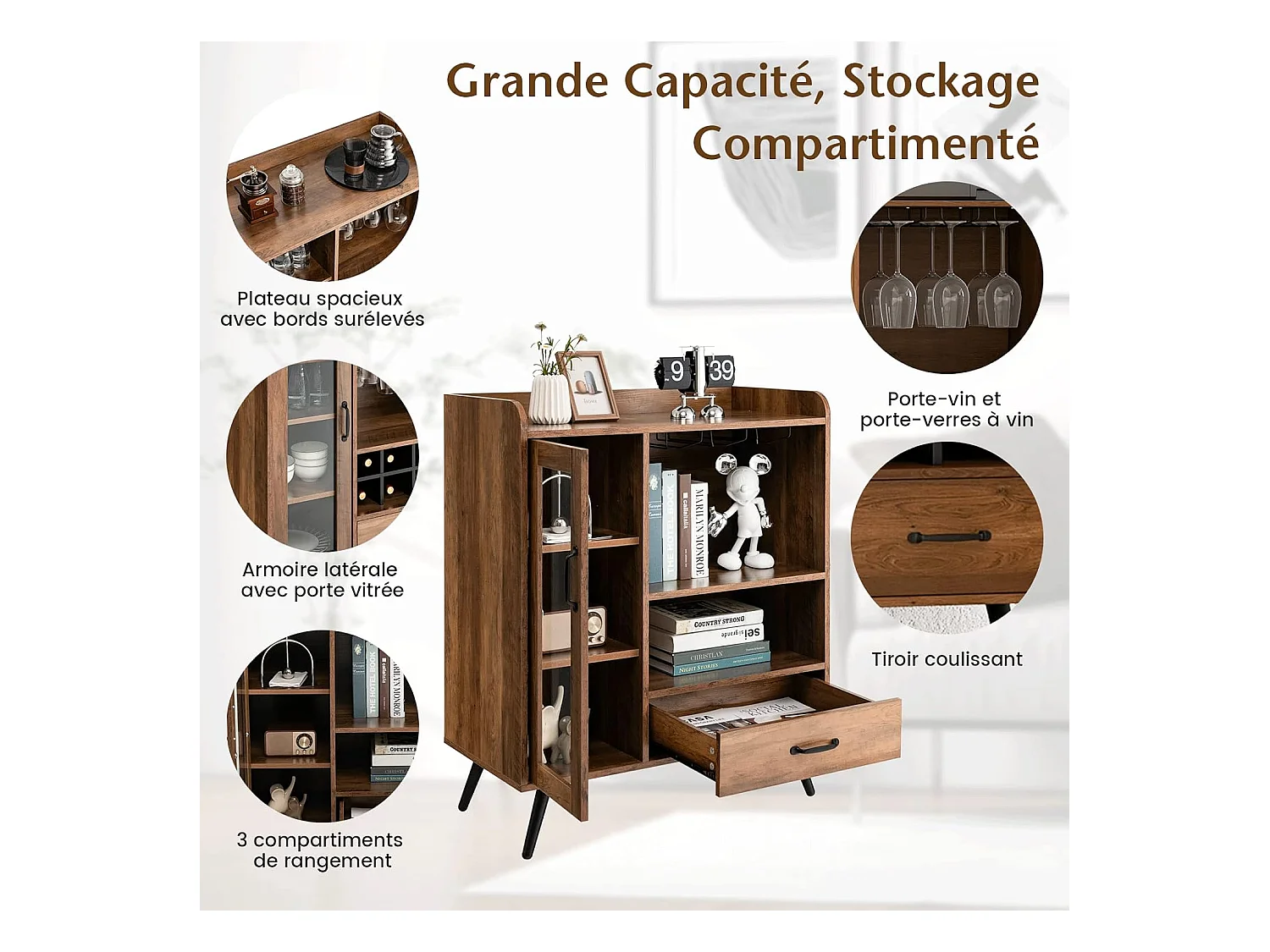 Buffet cuisine, meuble avec cassier à vin & étagères de rangement (brun rustique)