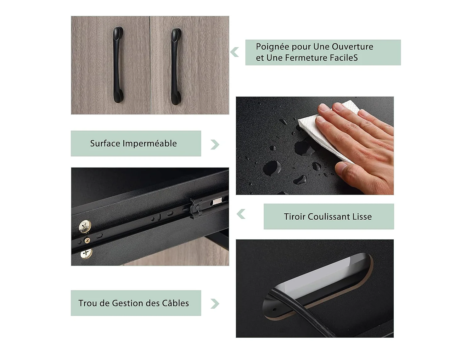 Buffet de cuisine L 123cm - Décor chene brut et noir - MIKE