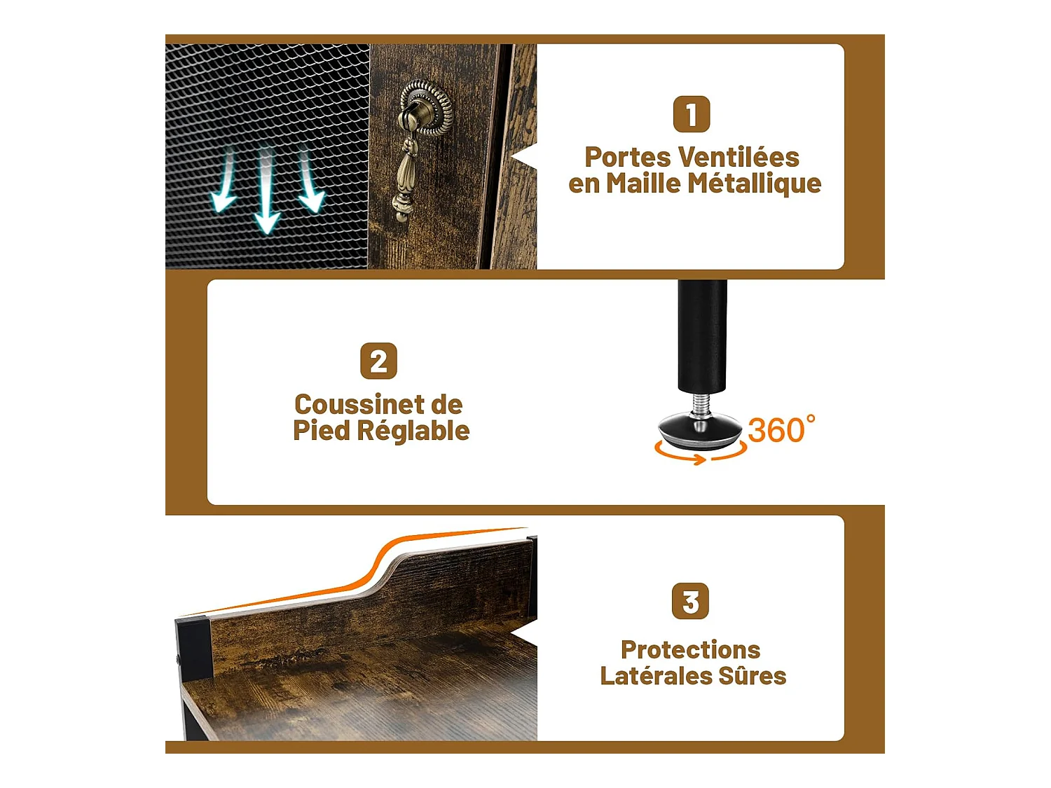 Buffet de cuisine à 2 portes en treillis, 60 x 34 x 79 cm, marron rustique