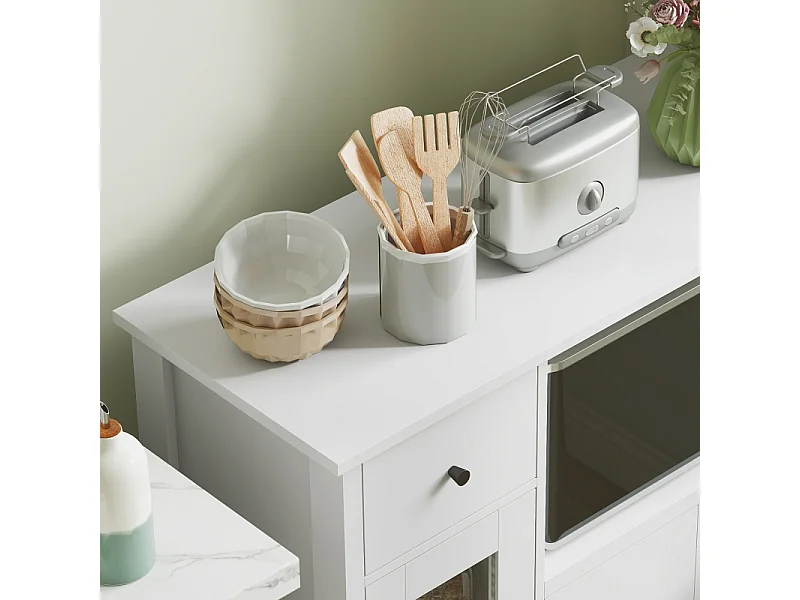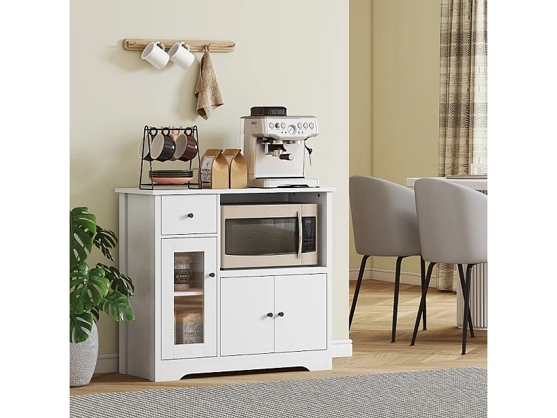 Buffet Cuisine Meuble de Cuisine, avec 1 Tiroir 3 Portes, pour Cuisine, Salle à Manger, Salon,Blanc