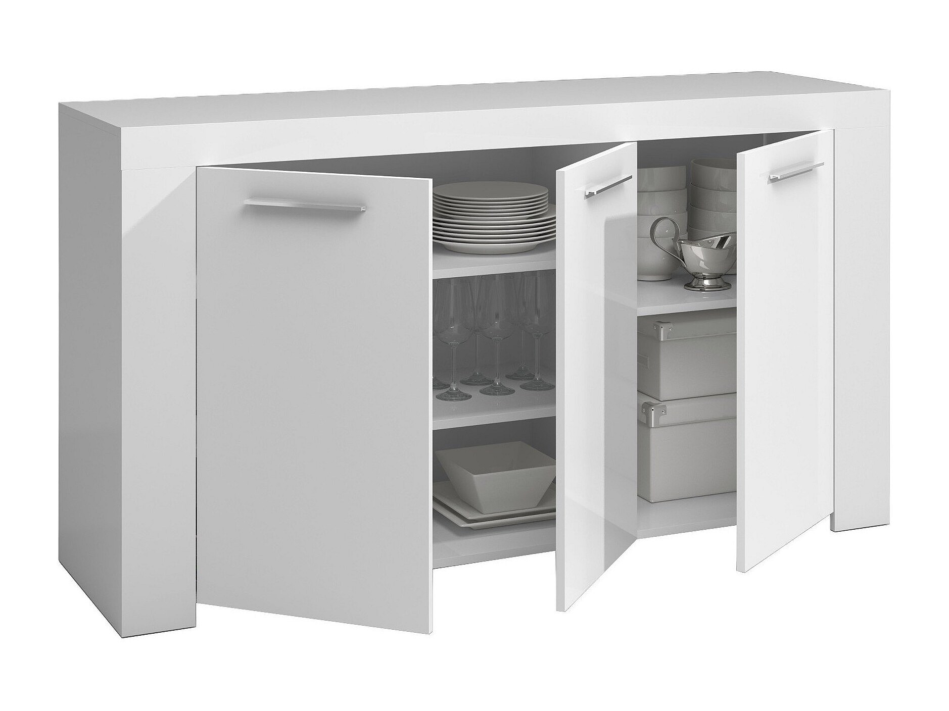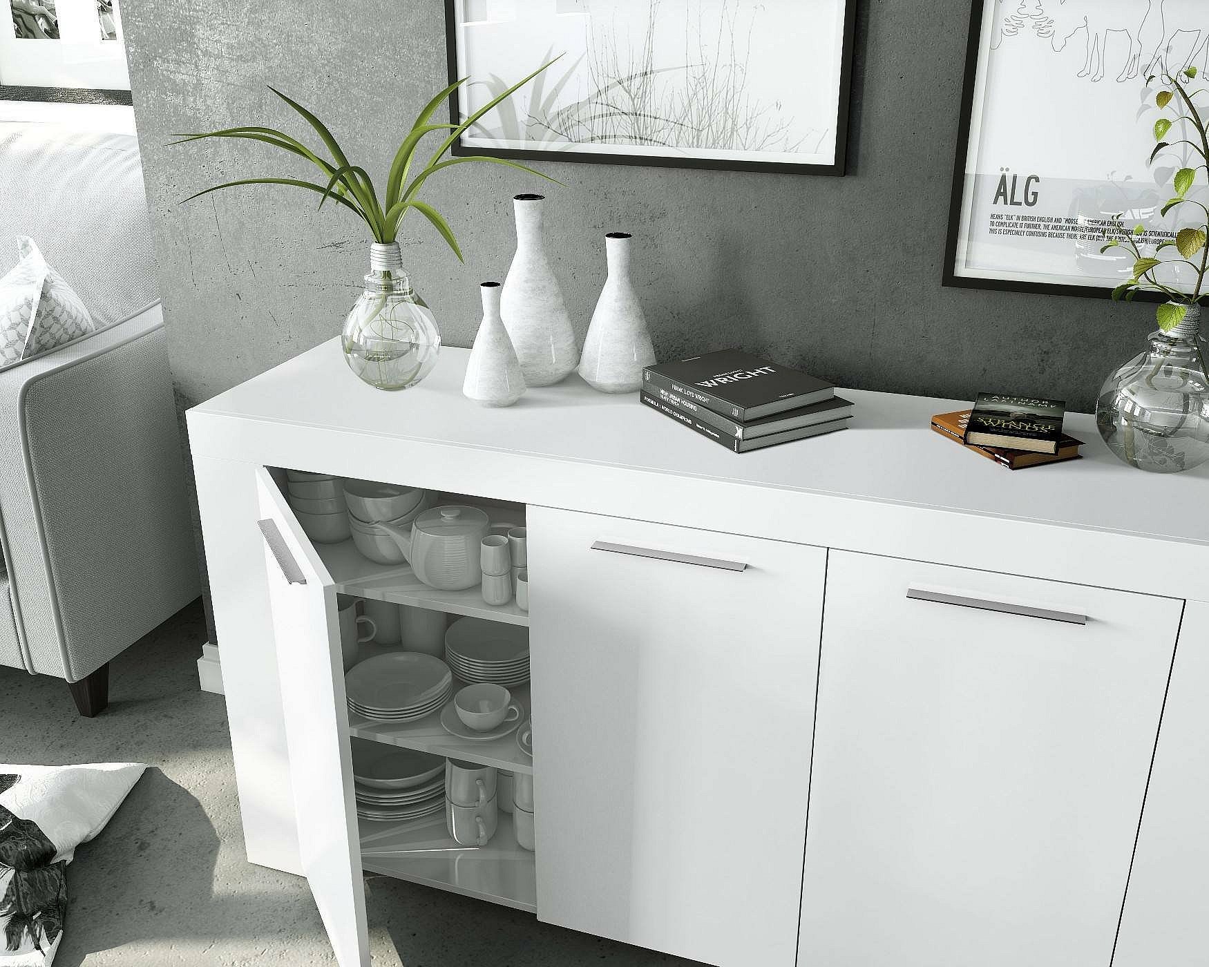 Buffet Dalbiera, Buffet de salon, Meuble TV, Buffet pour salon, Armoire moderne avec 3 portes, 144x42h80 cm, Blanc