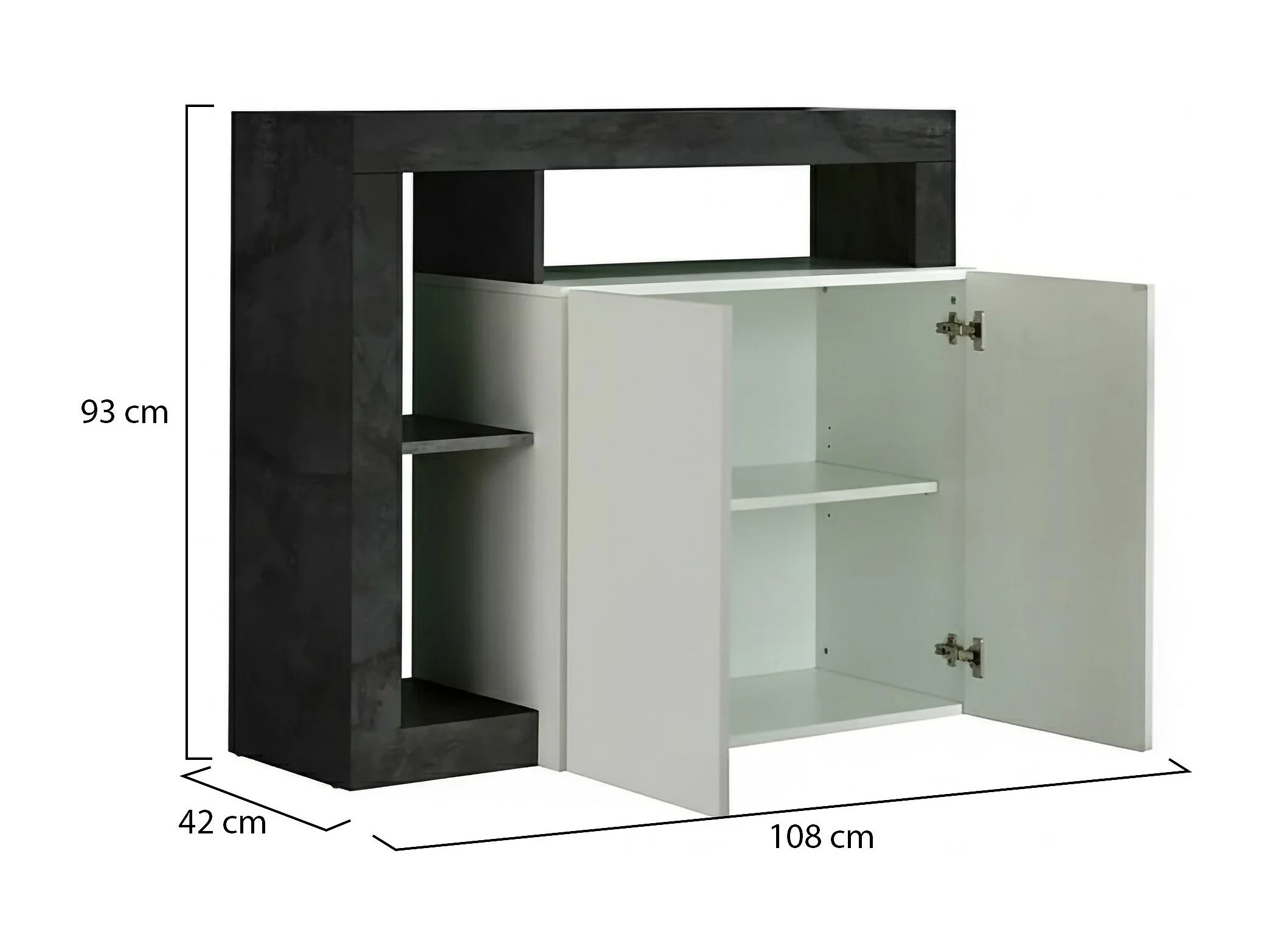 Buffet Dalle, Buffet du salon, Commode de salon, Garde-manger de cuisine, Made in Italy, 108x42 h93 cm, Blanc brillant et ardoise