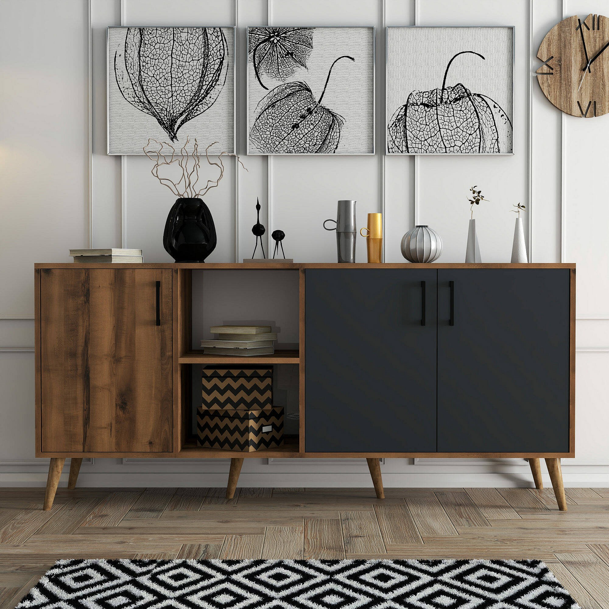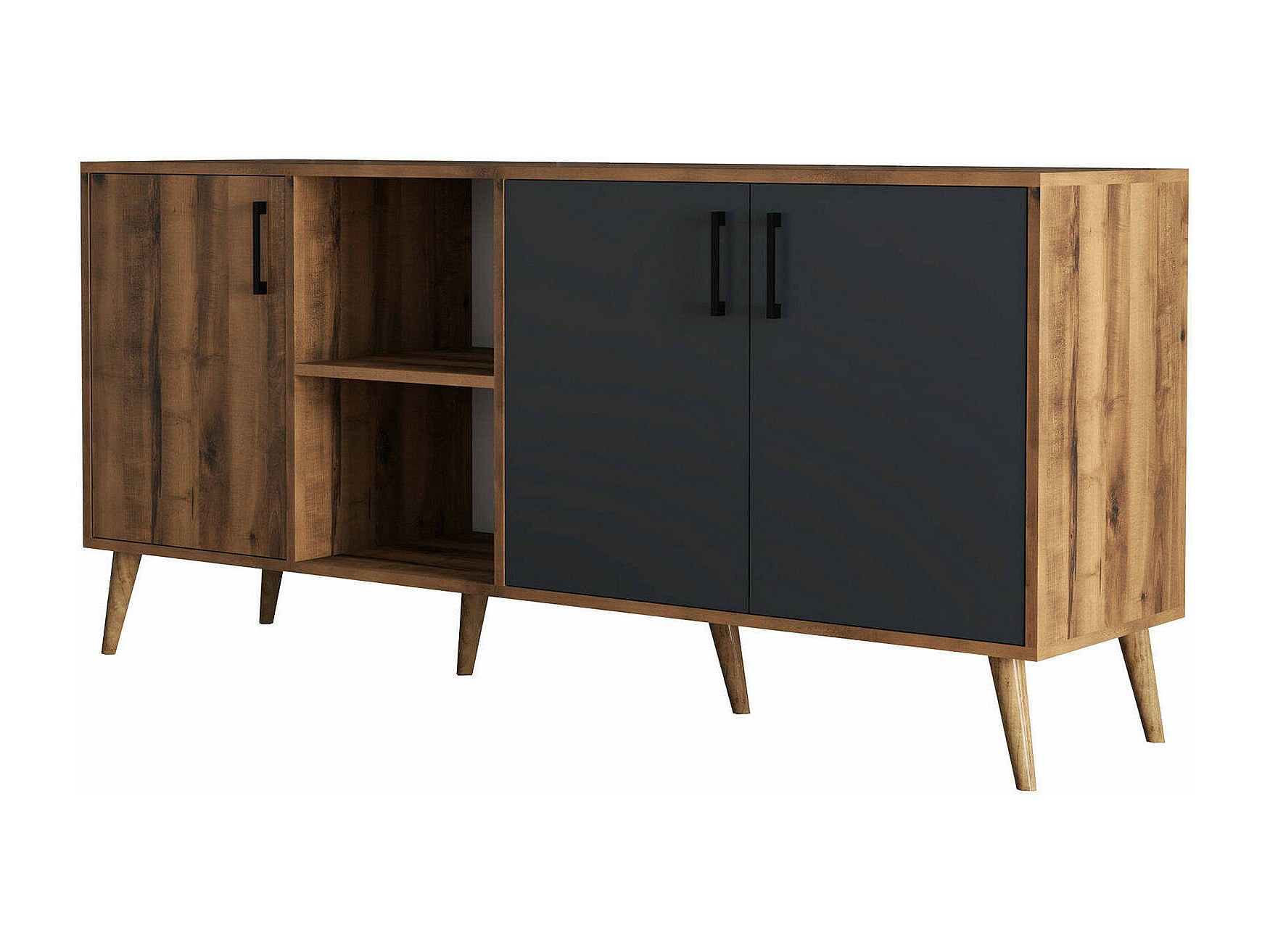 Buffet Dbrignon, Buffet du salon, Commode de salon, Garde-manger de cuisine, 180x45 h80 cm, Noyer et Anthracite