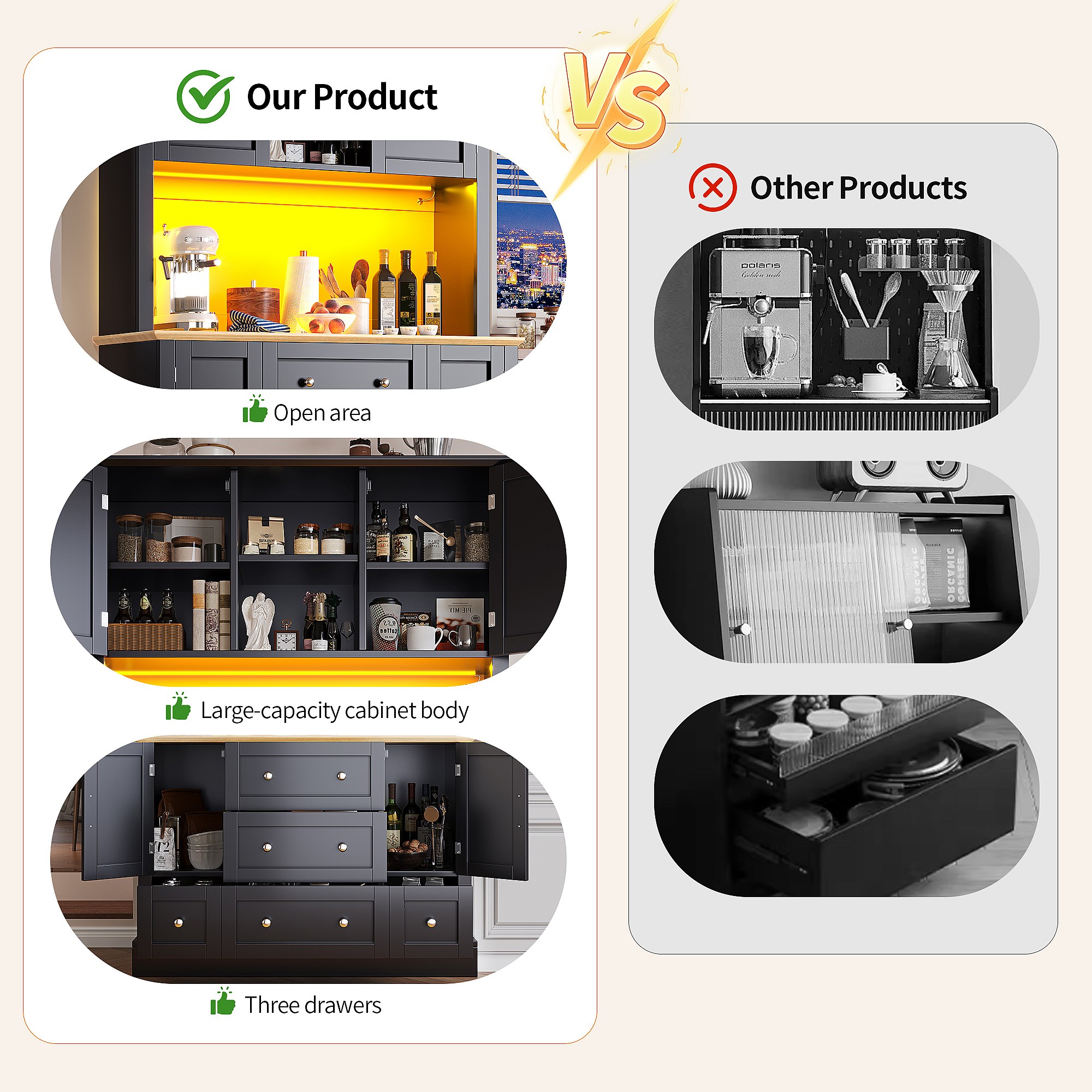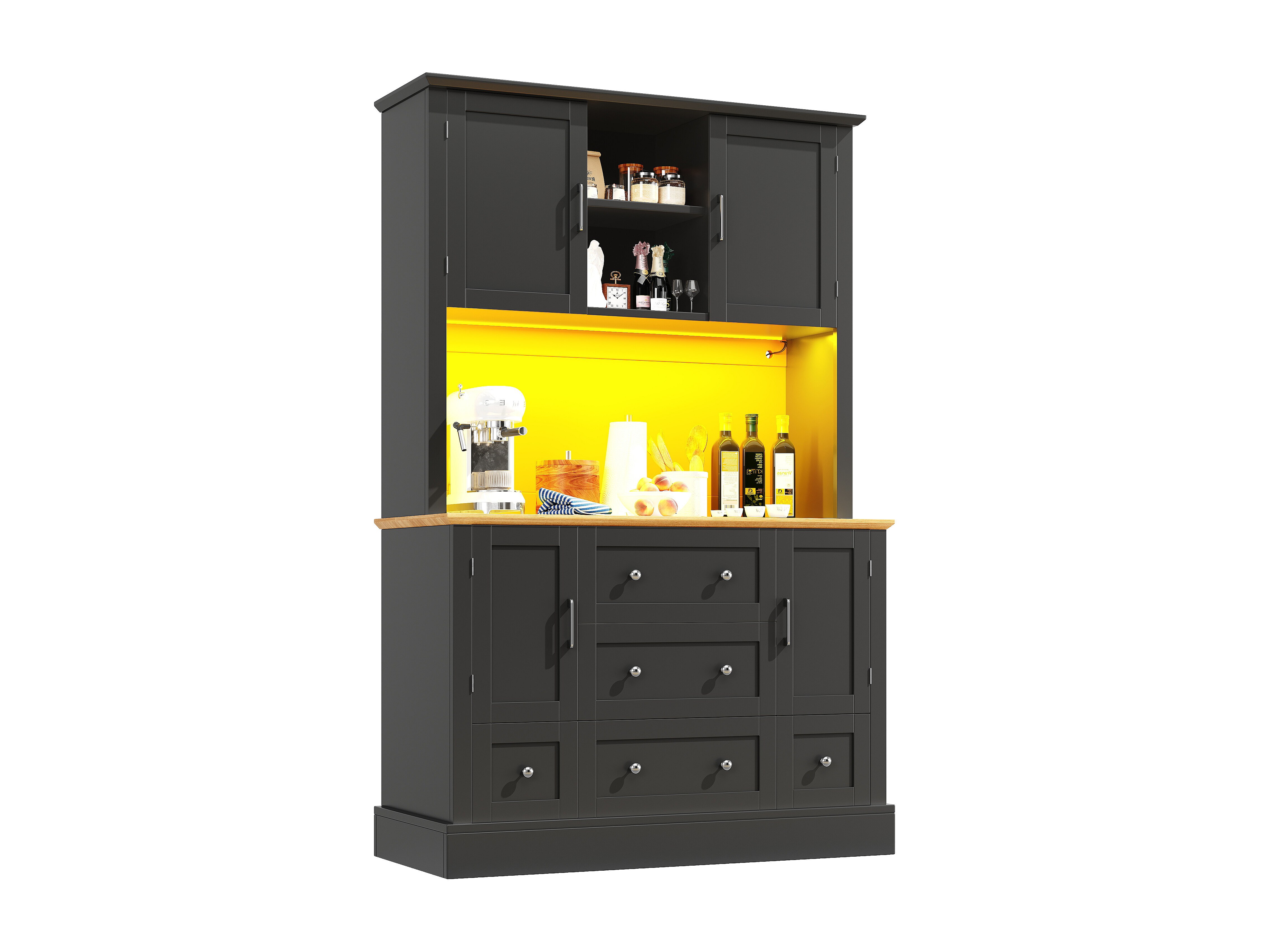 Buffet de cuisine 115x40x180cm - 4 portes + 3 tiroirs - meuble haut - avec éclairage LED - Style moderne - Noir