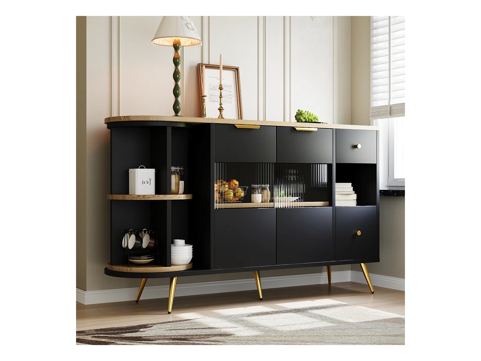Dalby buffet 2 portes en verre, 3 tiroirs noir.