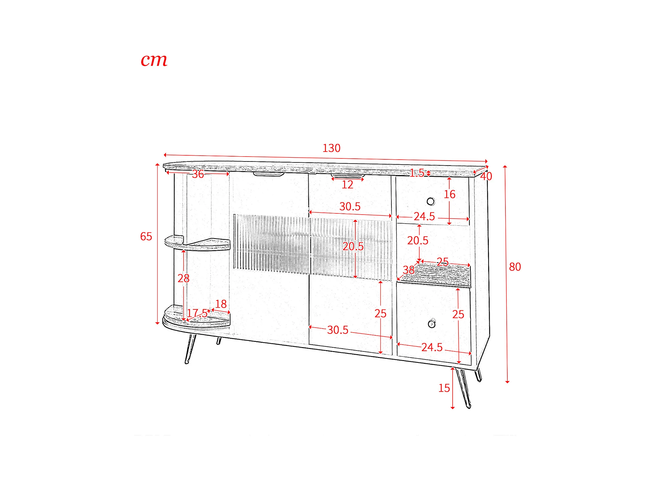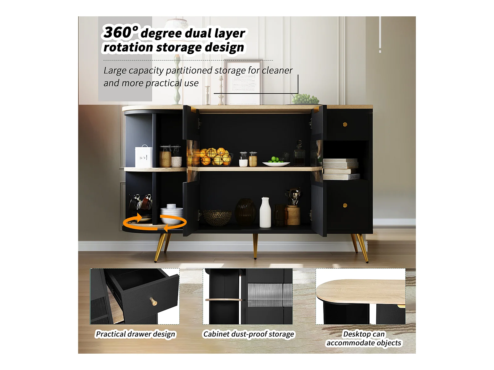 Buffet 138x40x80.5cm, armoire avec 3 portes, étagères réglables, portes en forme de U, base en métal, noir