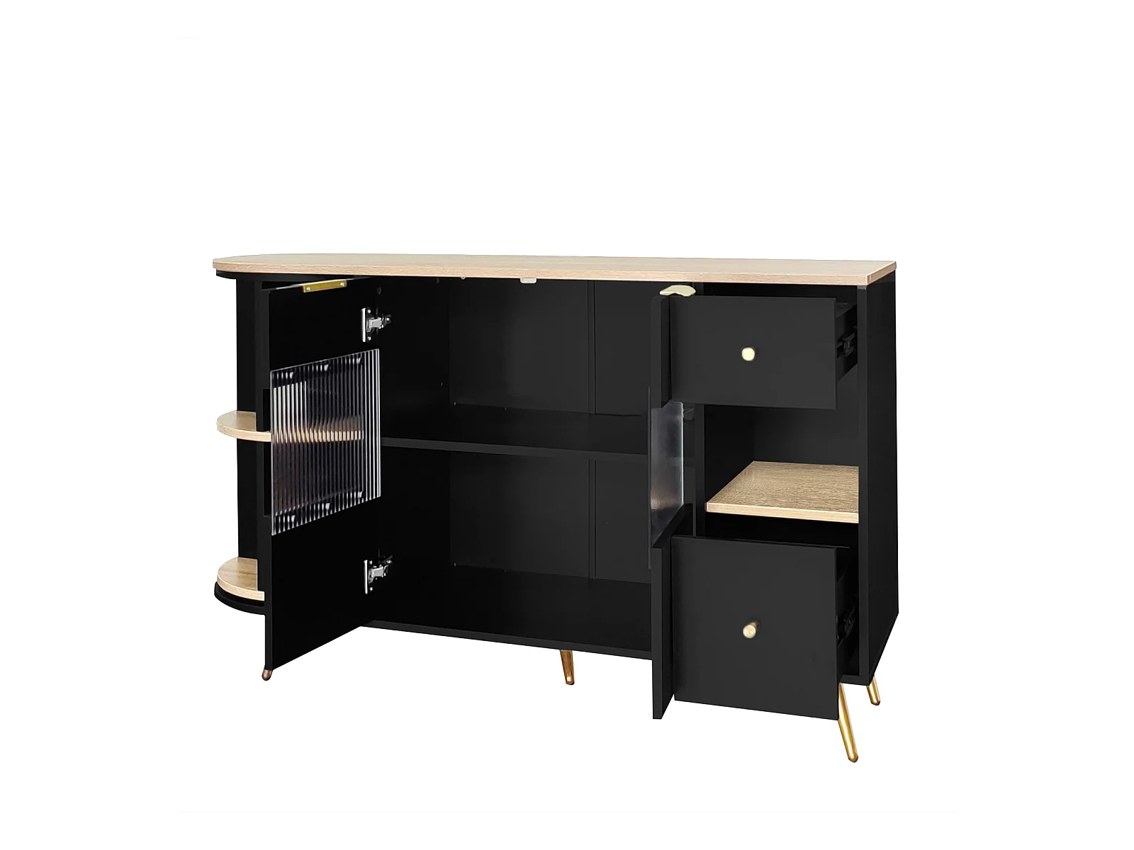Buffet 140x80x38cm, avec 4 portes, poignées dorées et séparateurs réglables, design élégant, panneaux de particules, noir