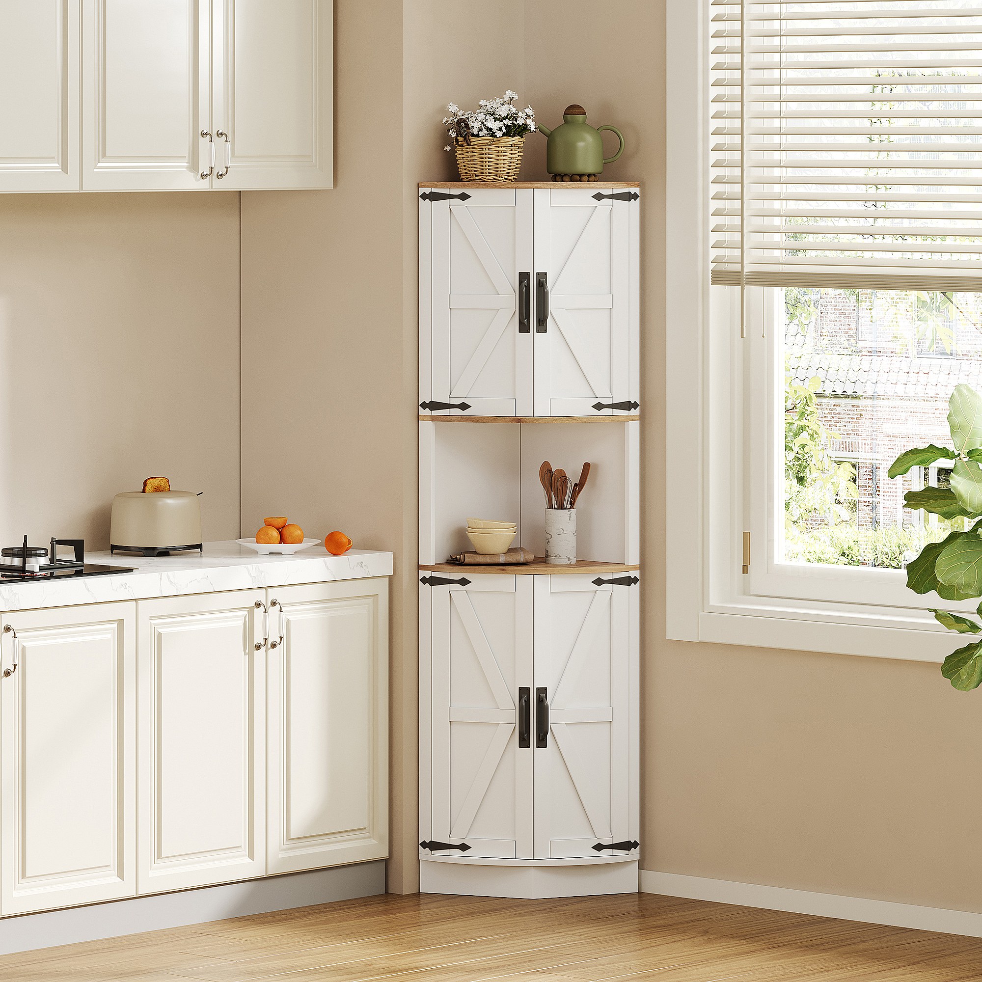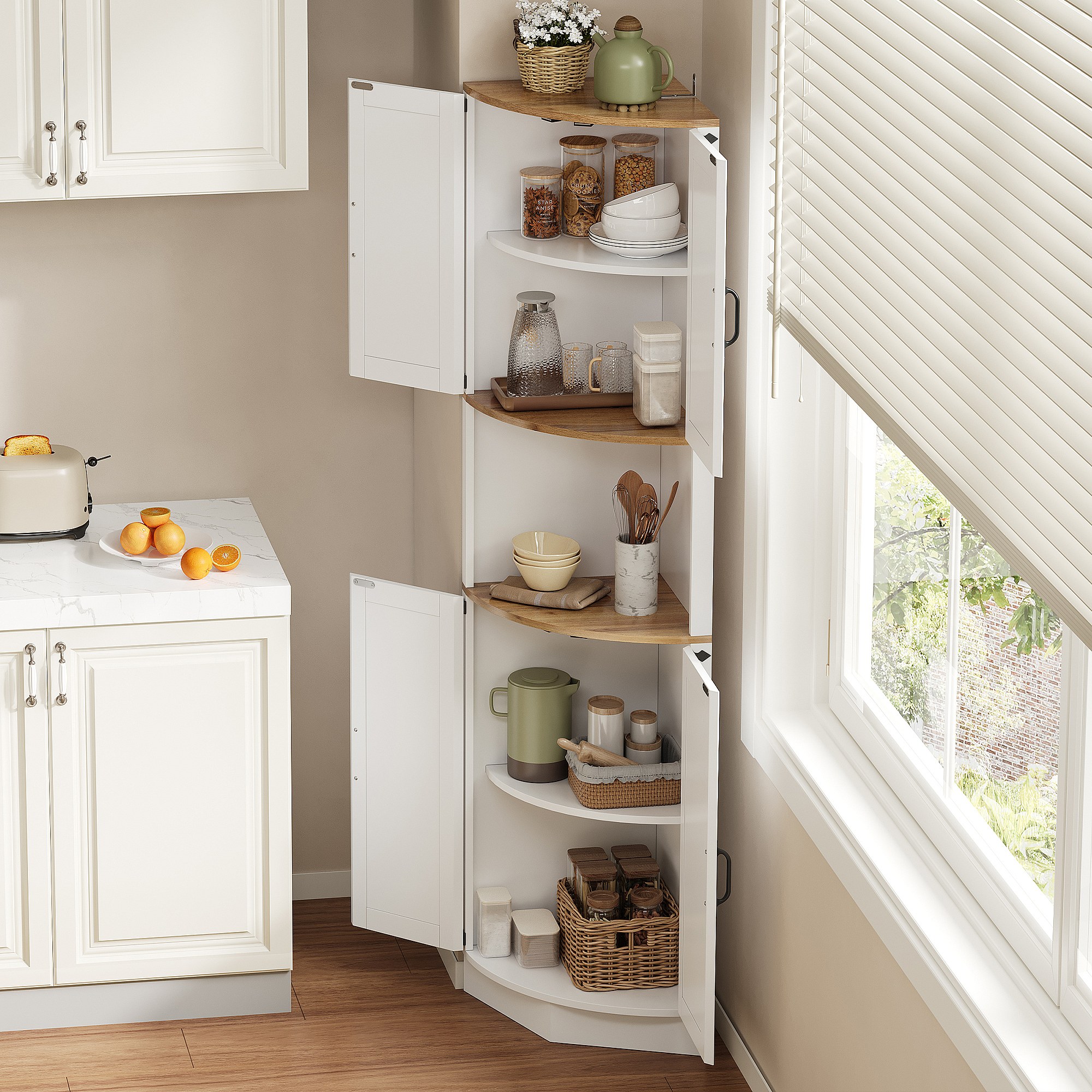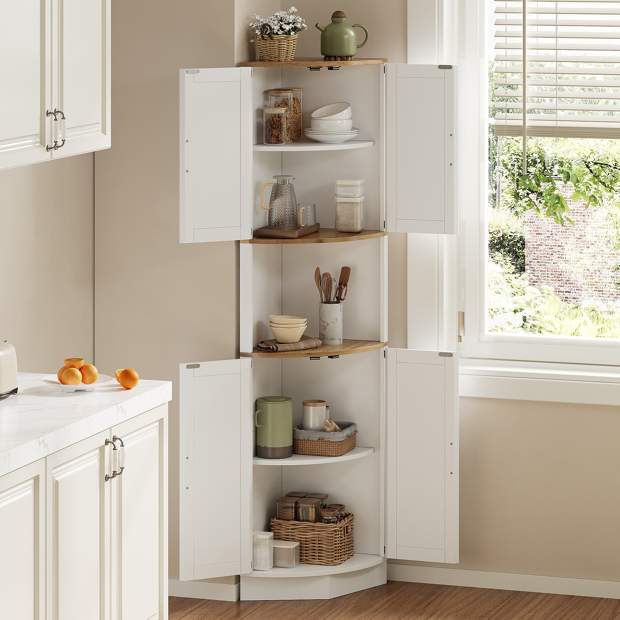 Buffet de cuisine 39.5x39.5x180cm - avec 4 portes et 5 compartiments de rangement - design rétro - Blanc