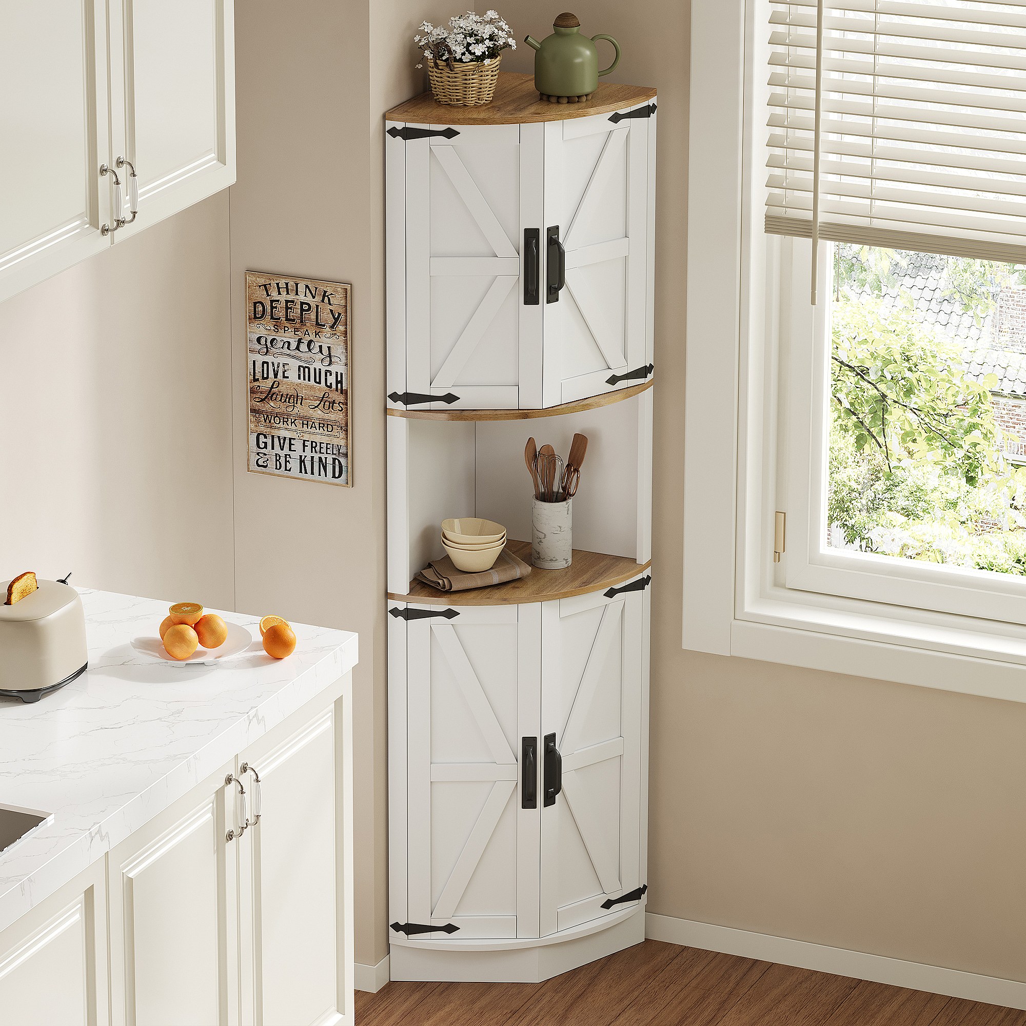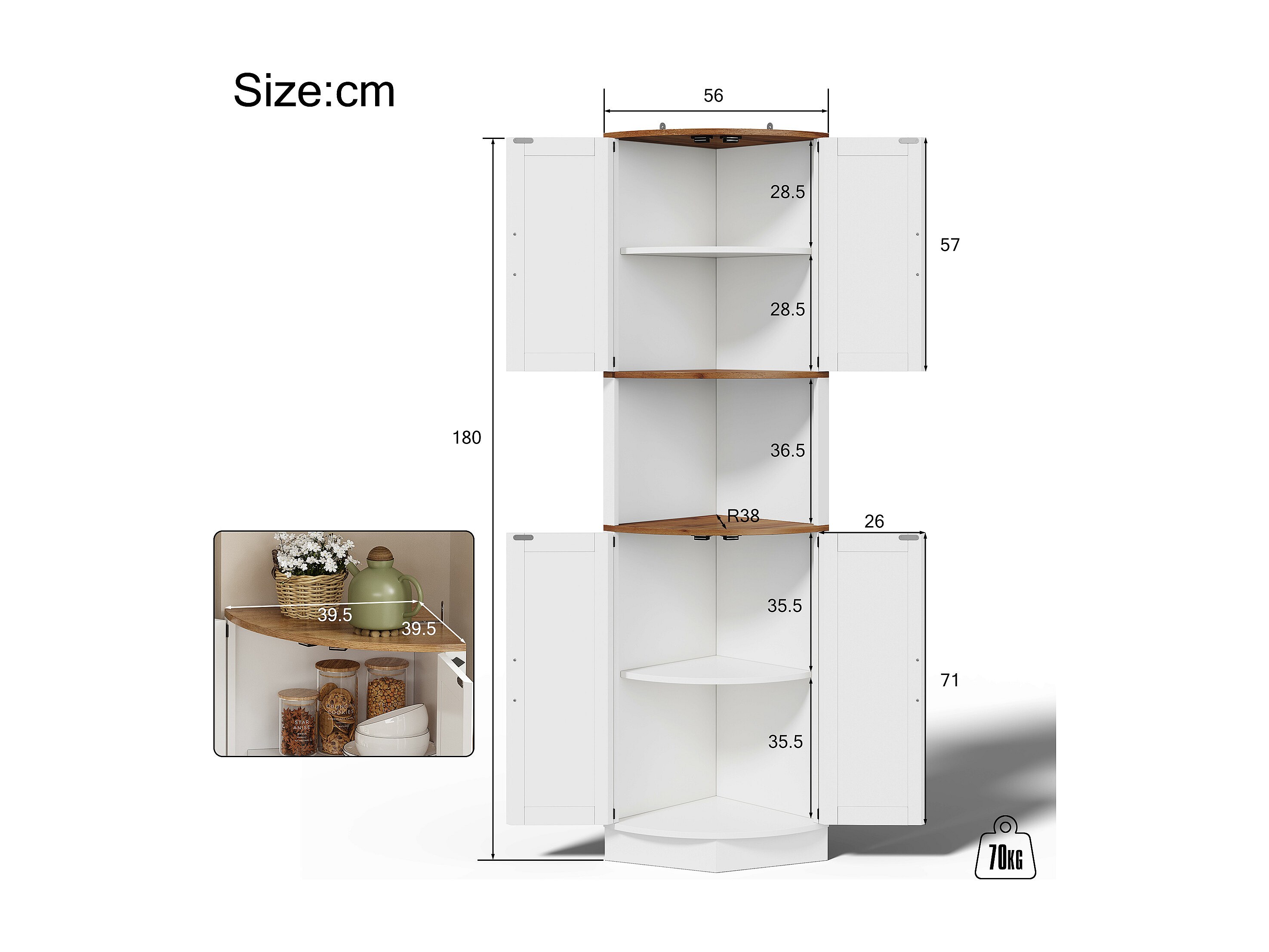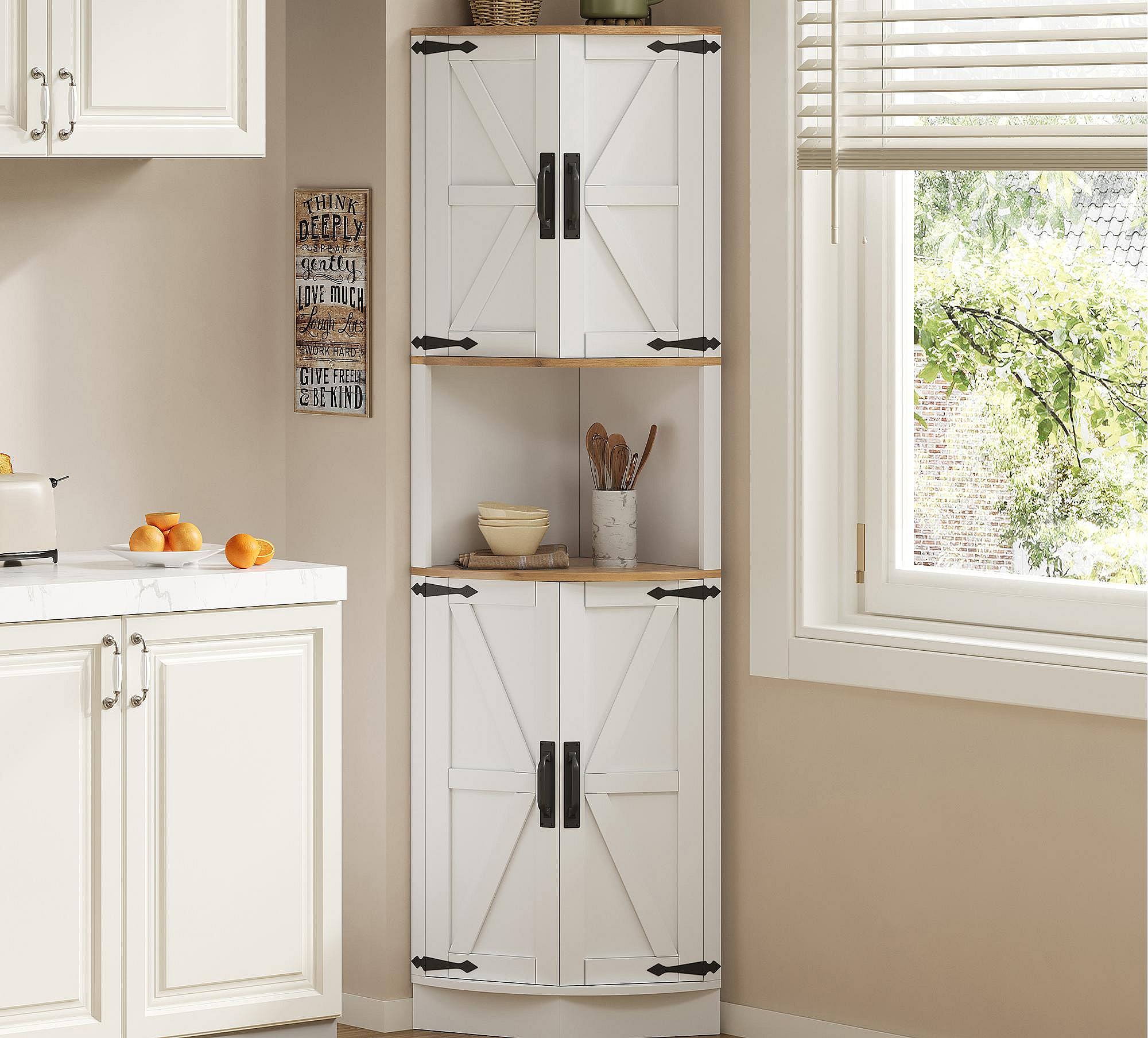 Buffet de cuisine 39.5x39.5x180cm - avec 4 portes et 5 compartiments de rangement - design rétro - Blanc