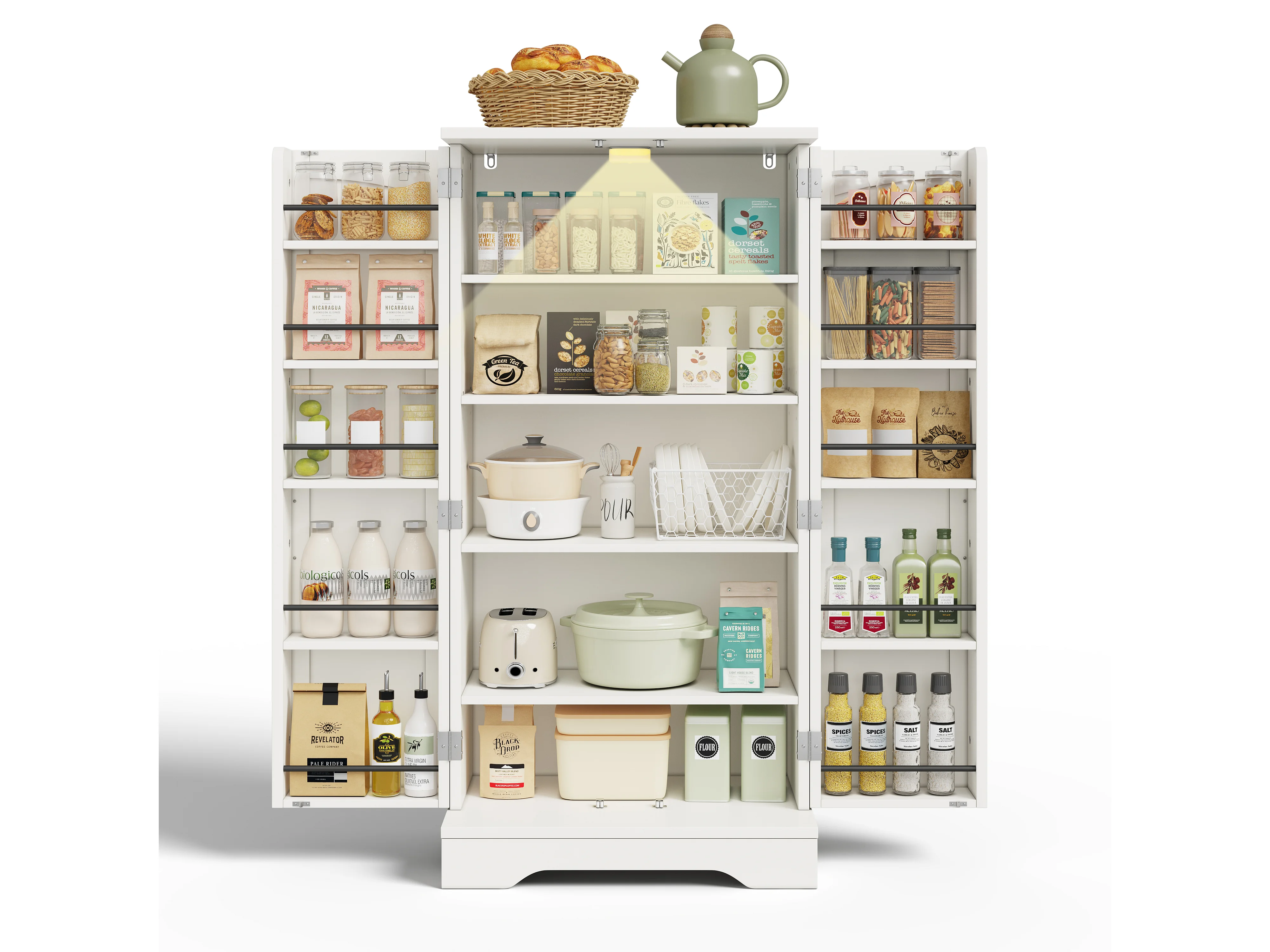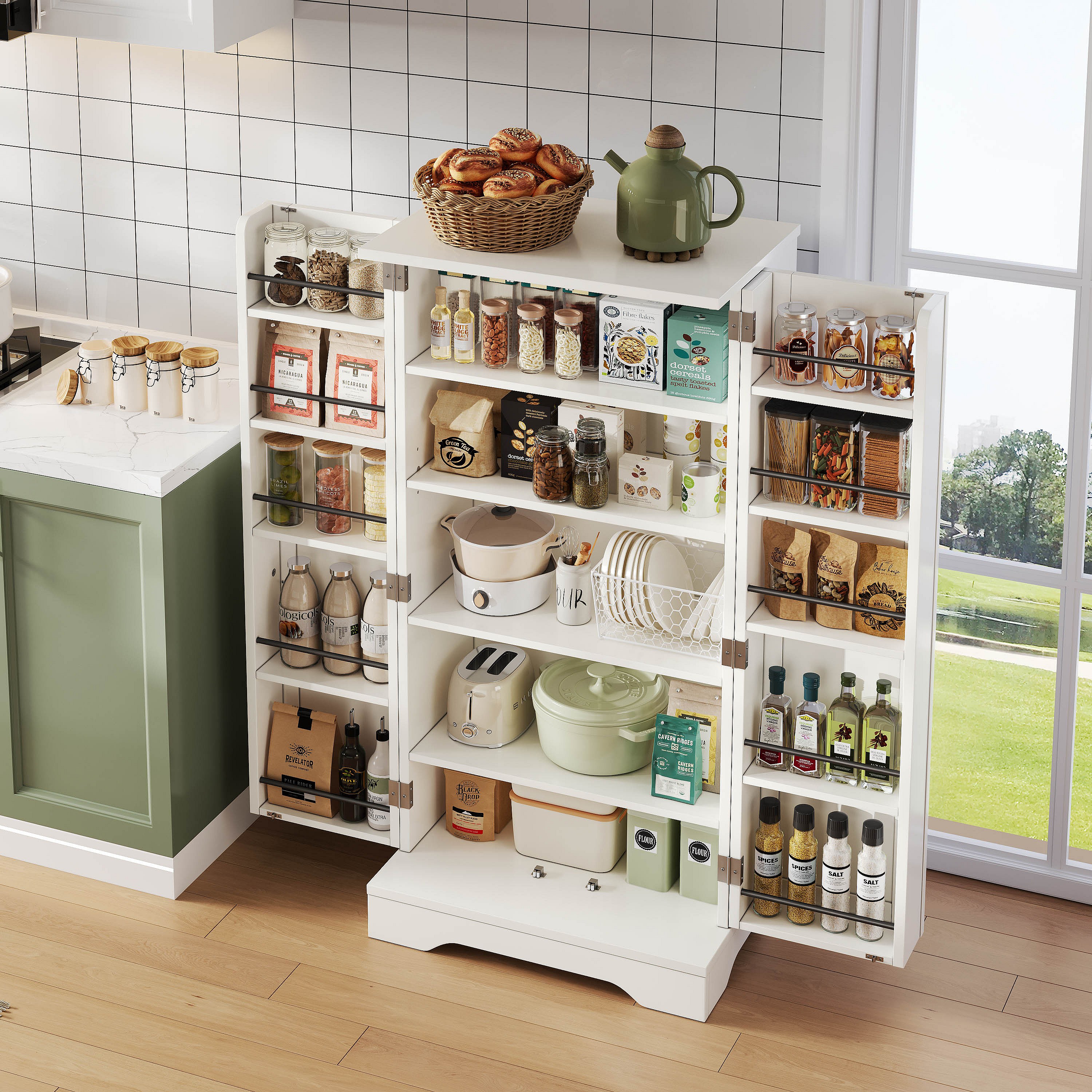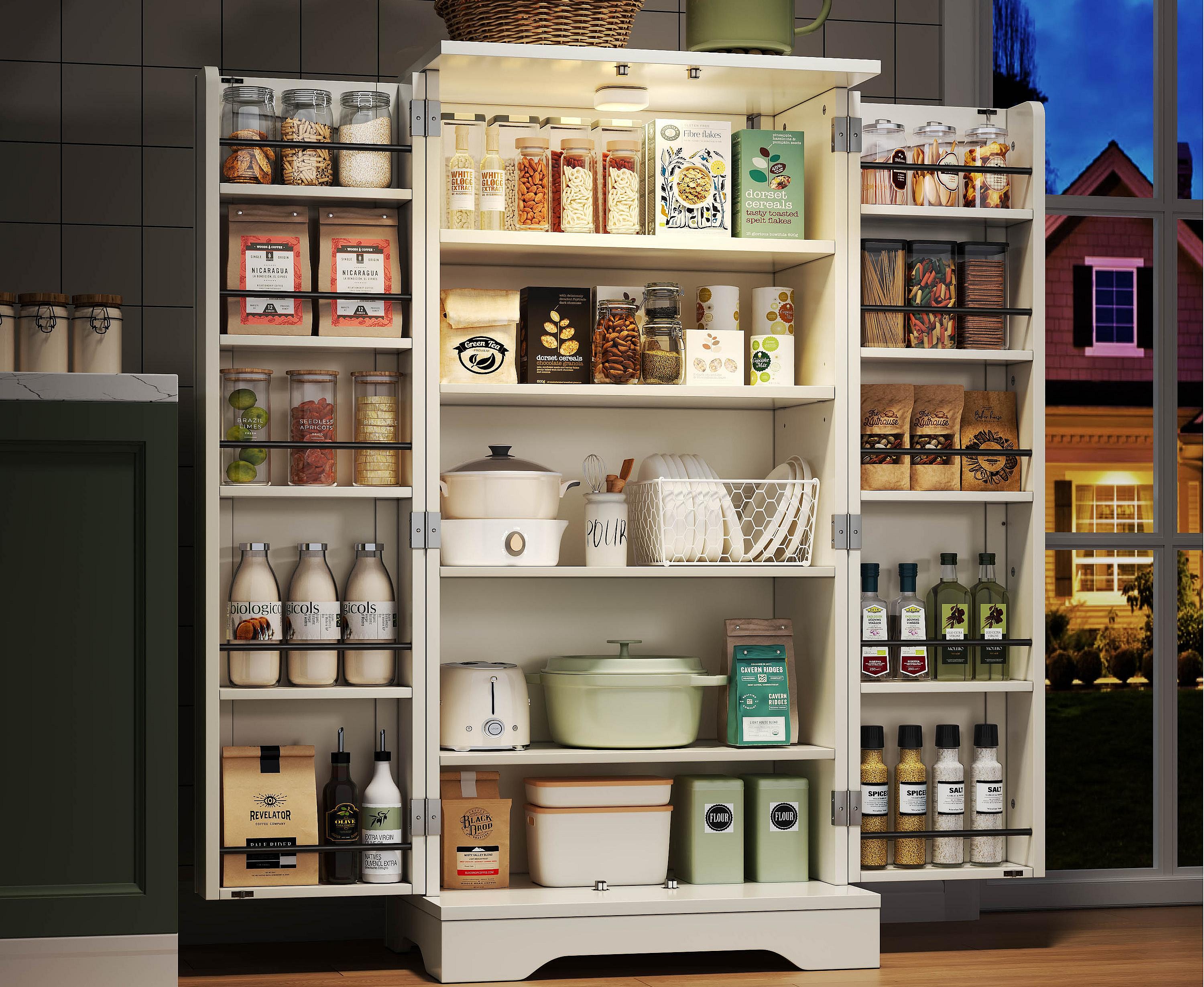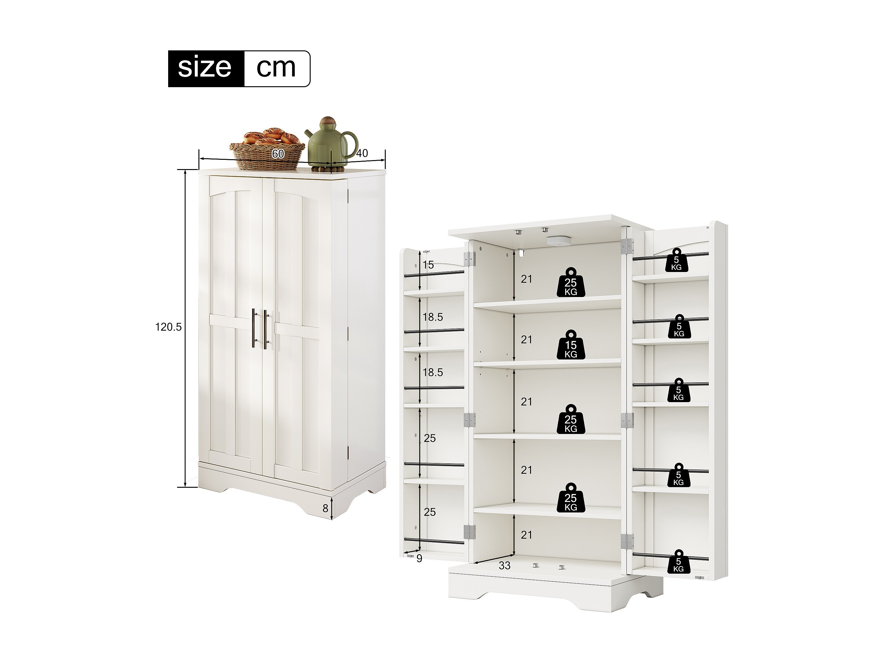 Buffet de cuisine 60x40x120cm - avec capteur de lumière LED - avec 2 portes - avec étagères - design moderne - Blanc