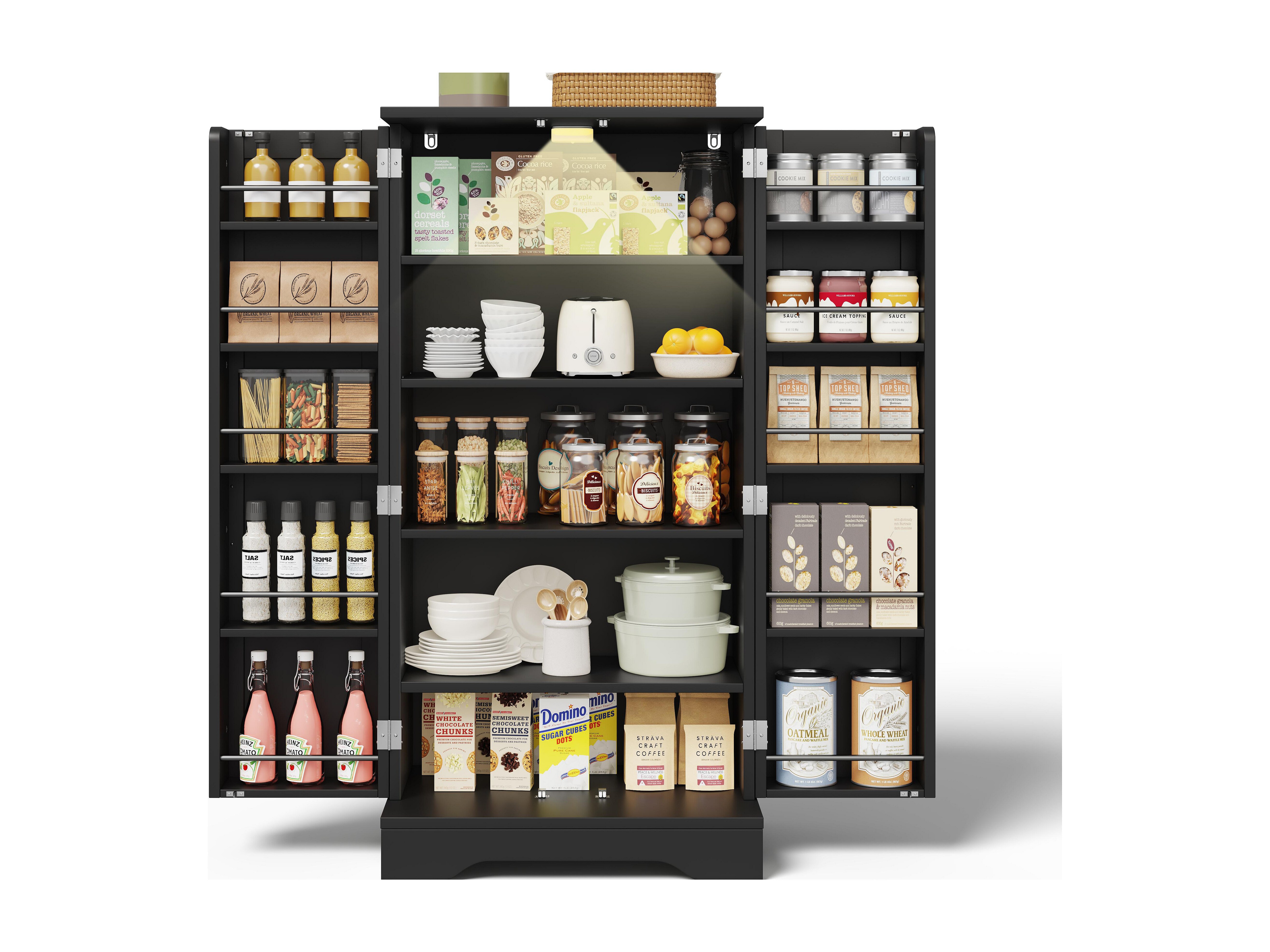 Buffet de cuisine 60x40x120cm - avec capteur de lumière LED - avec 2 portes - avec étagères - Noir