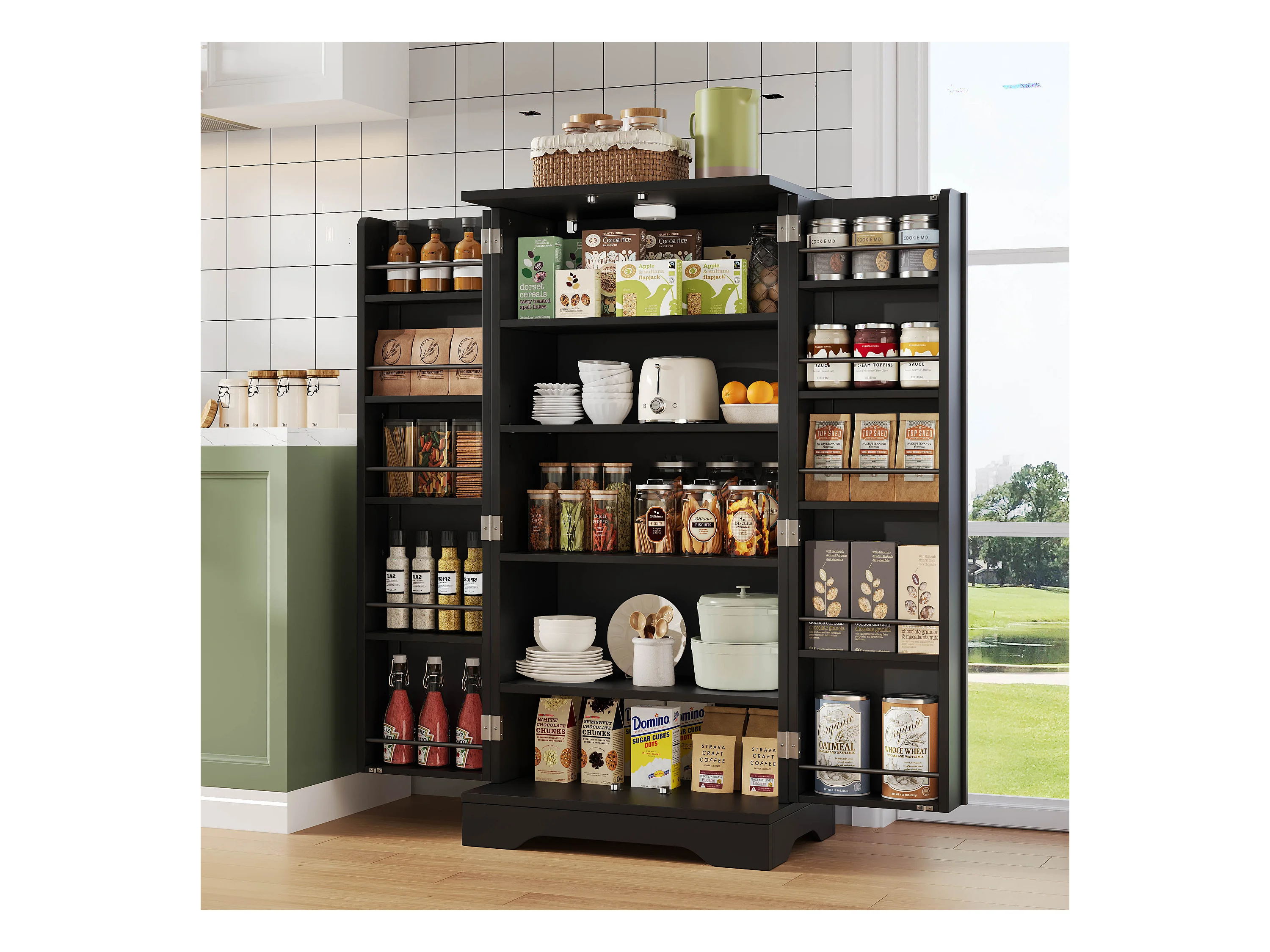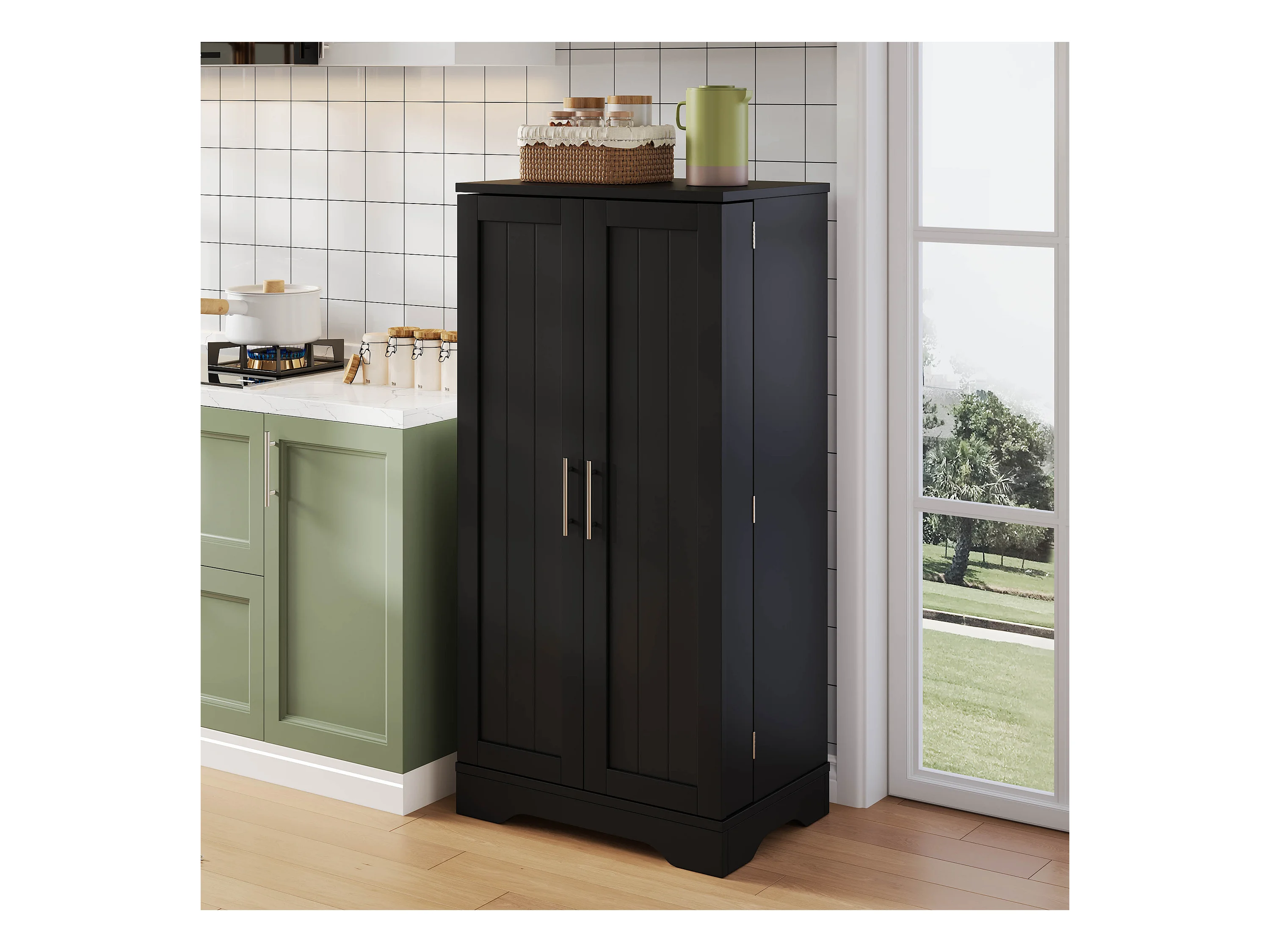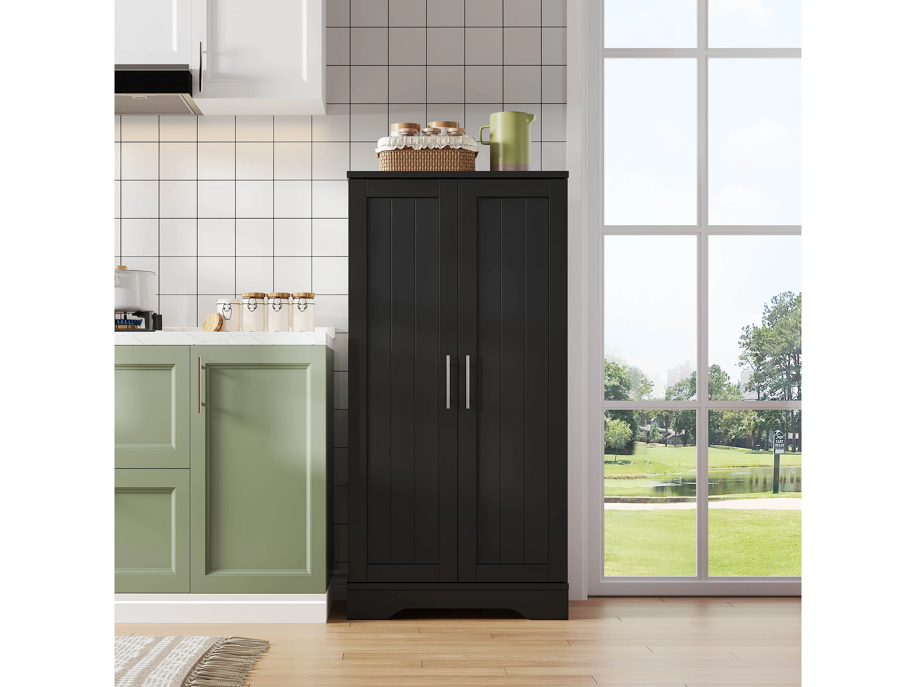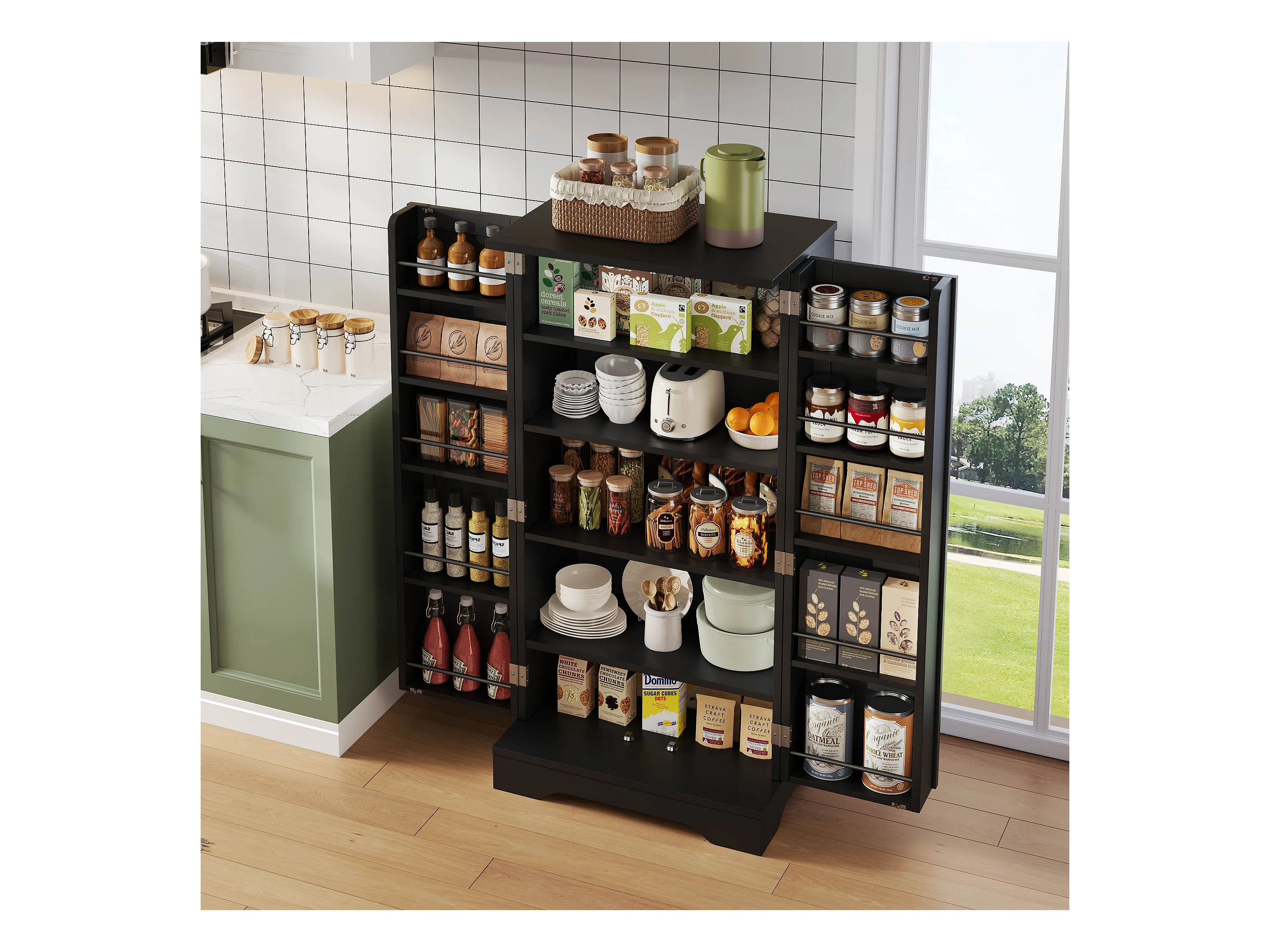 Buffet de cuisine 80x40x182cm - avec 2 portes et 1 tiroir - 2 portes avec étagères - Noir