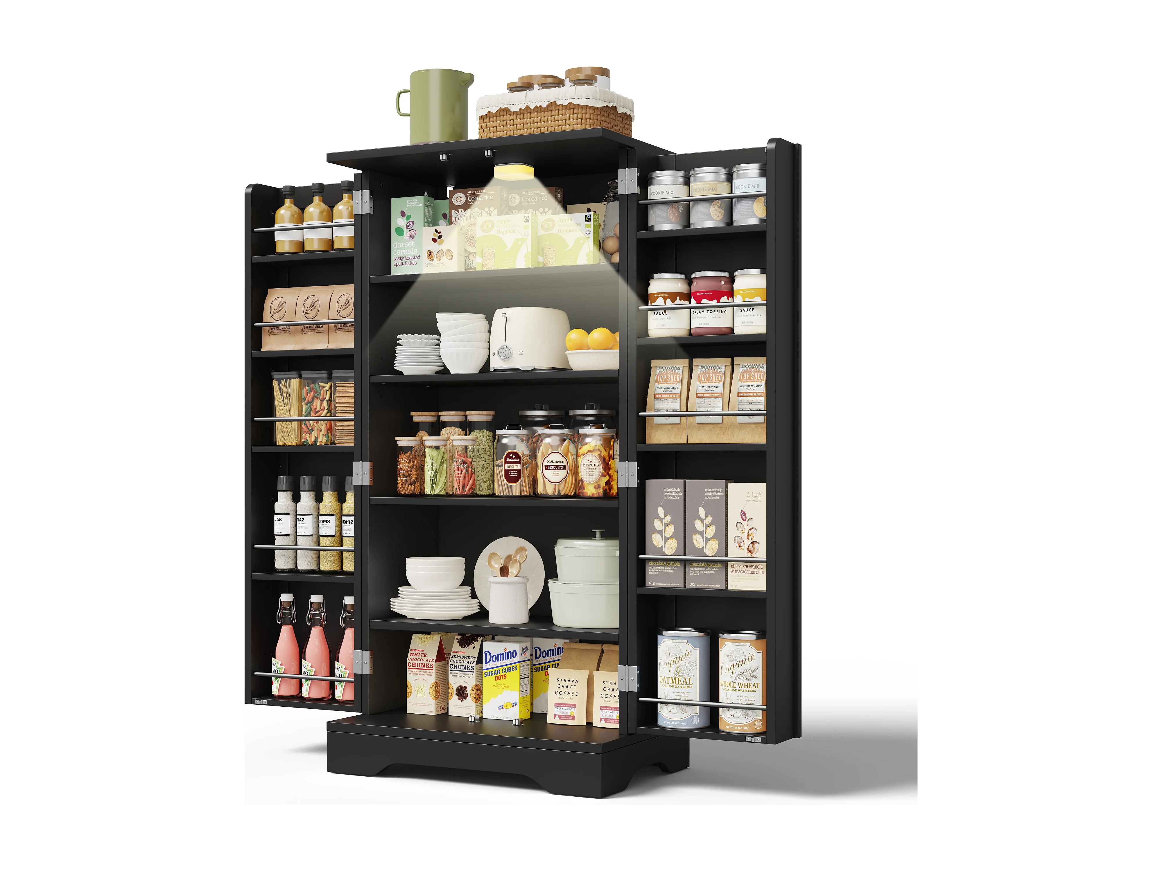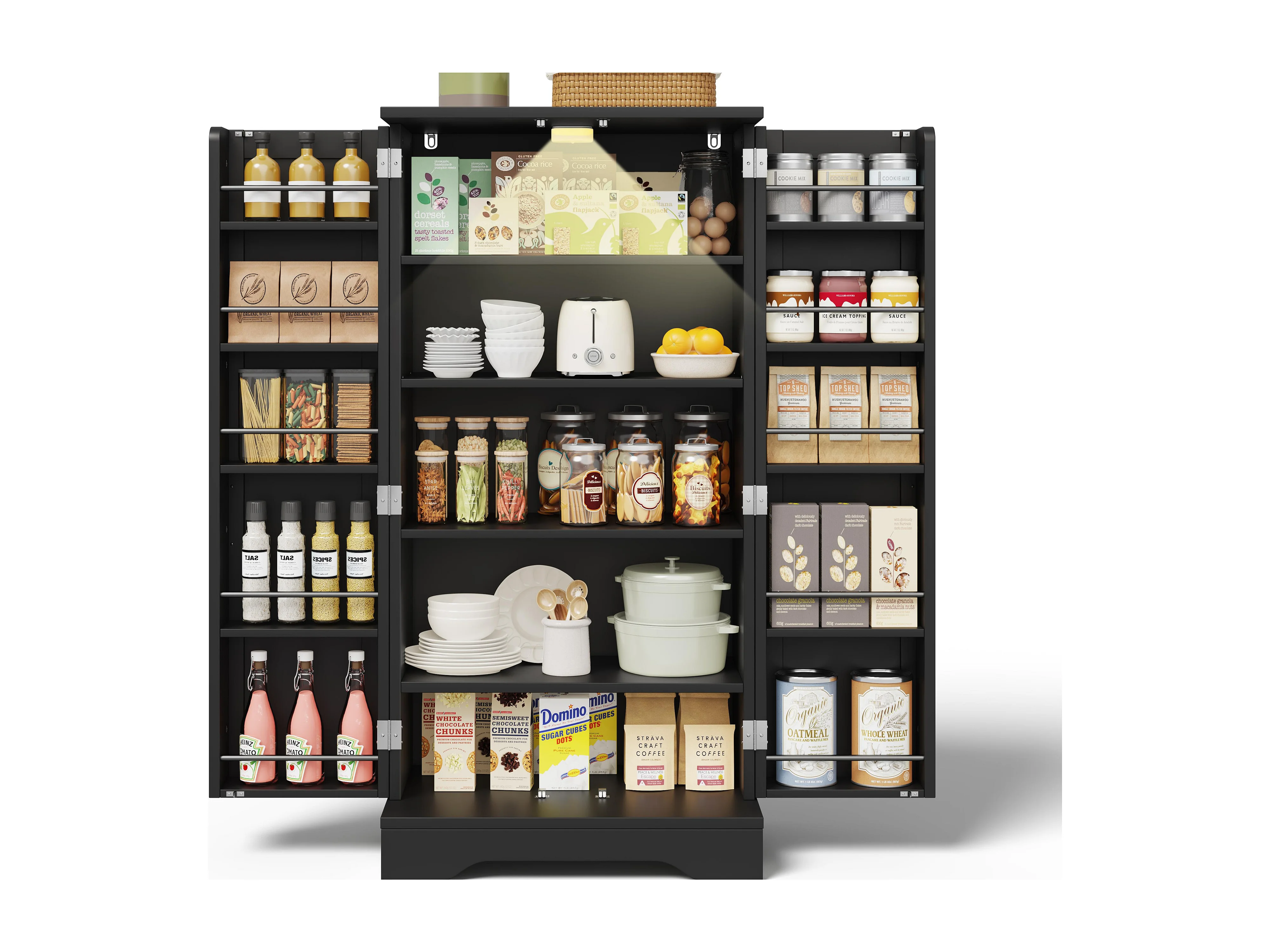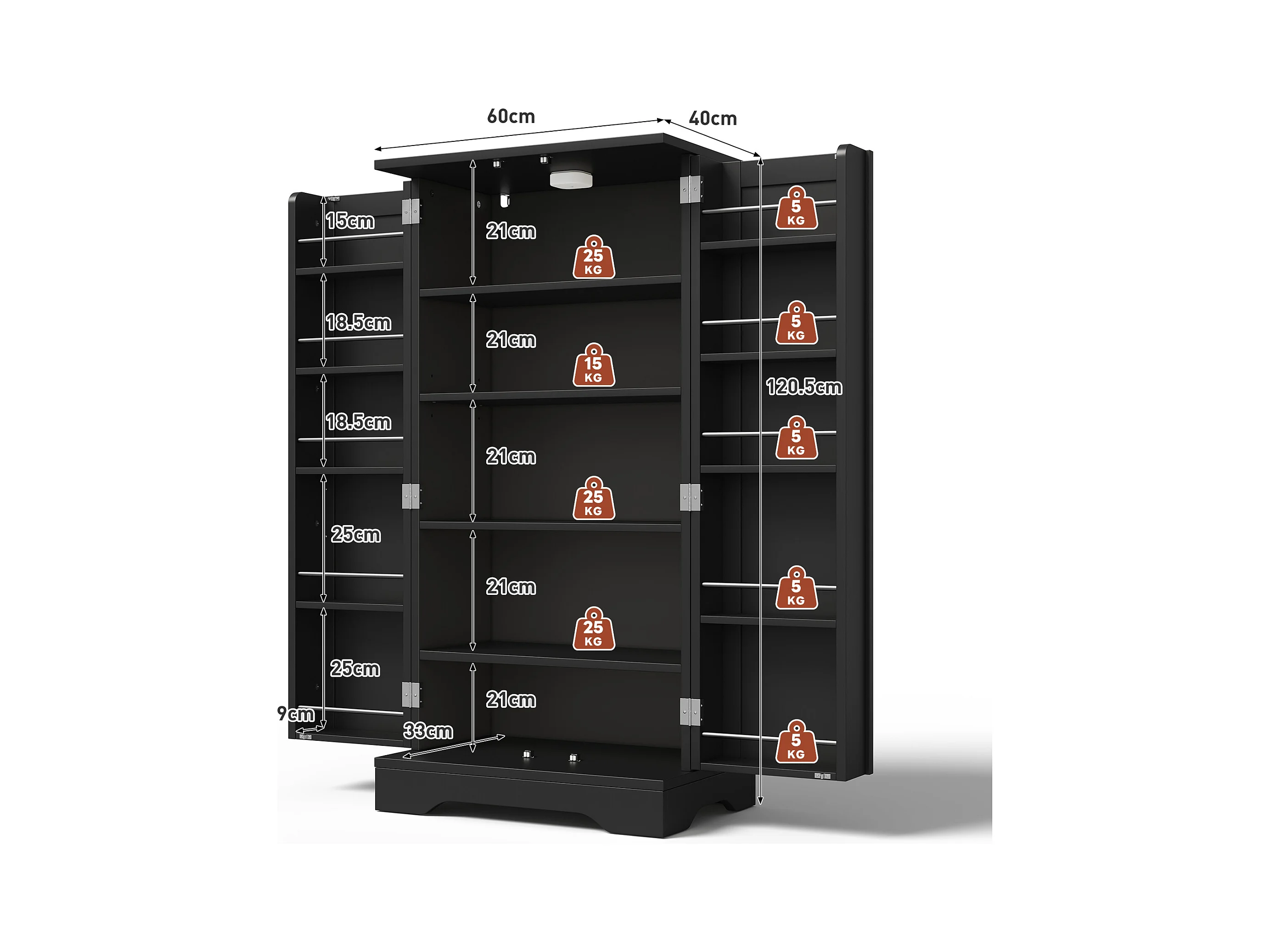 Buffet de cuisine 60x40x120cm - avec capteur de lumière LED - avec 4 portes - avec étagères - Noir
